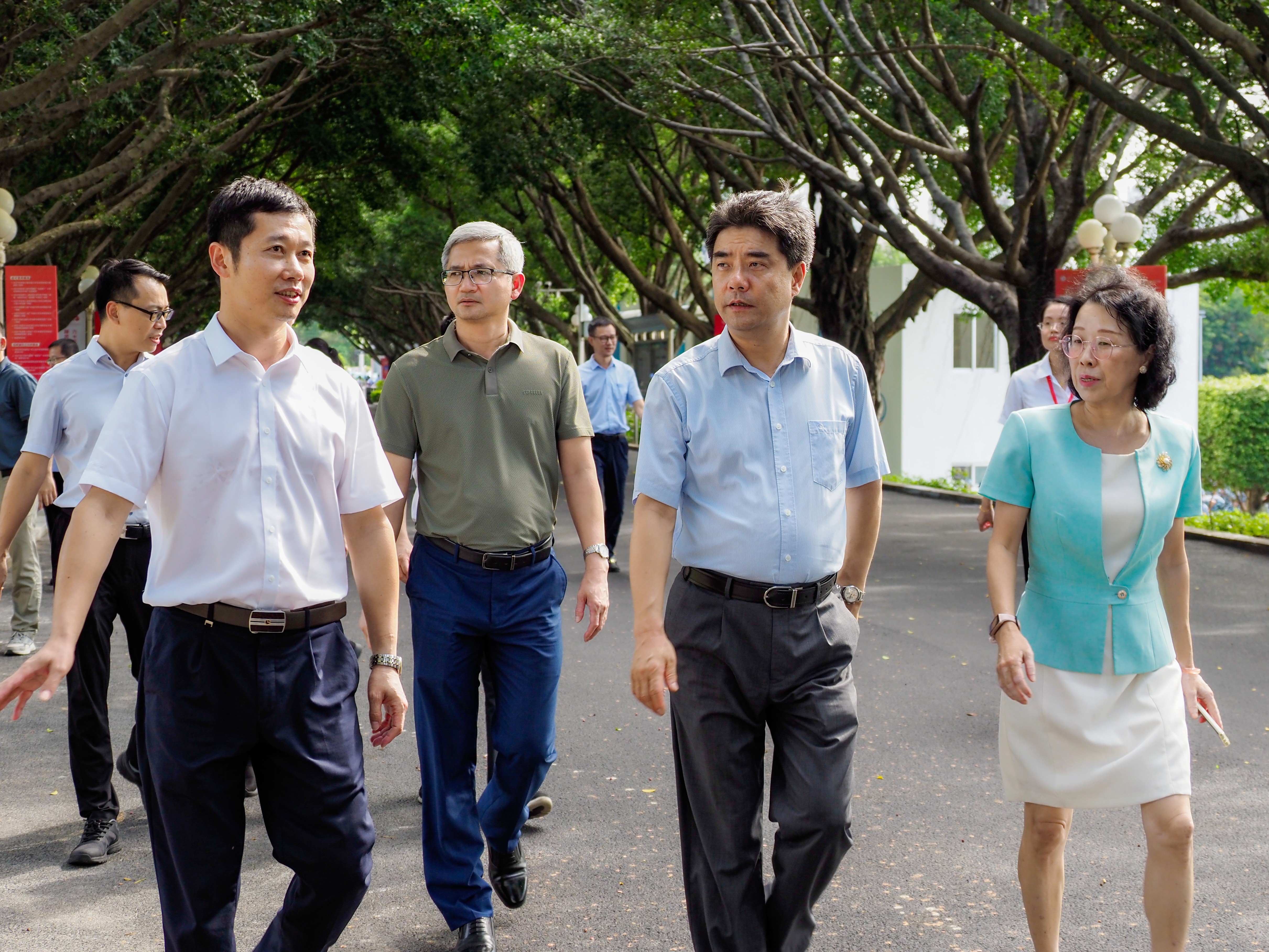 骄阳烈日磨心志,青春热血铸军魂。2023级学生军训已过半程,学校各部门齐心协力做好保障,教官认真负责、科学施训,学生斗志昂扬、刻苦训练,2023级本科生正在经历着青春的成长与蜕变。自军训工作开展以来,学校领导高度重视,党委书记胡钦太,党委副书记、校长邱学青,党委副书记陈卓武先后到训练场慰问指导,与各团营的教官、指导员亲切交流,了解军训进展以及同学们的训练情况。