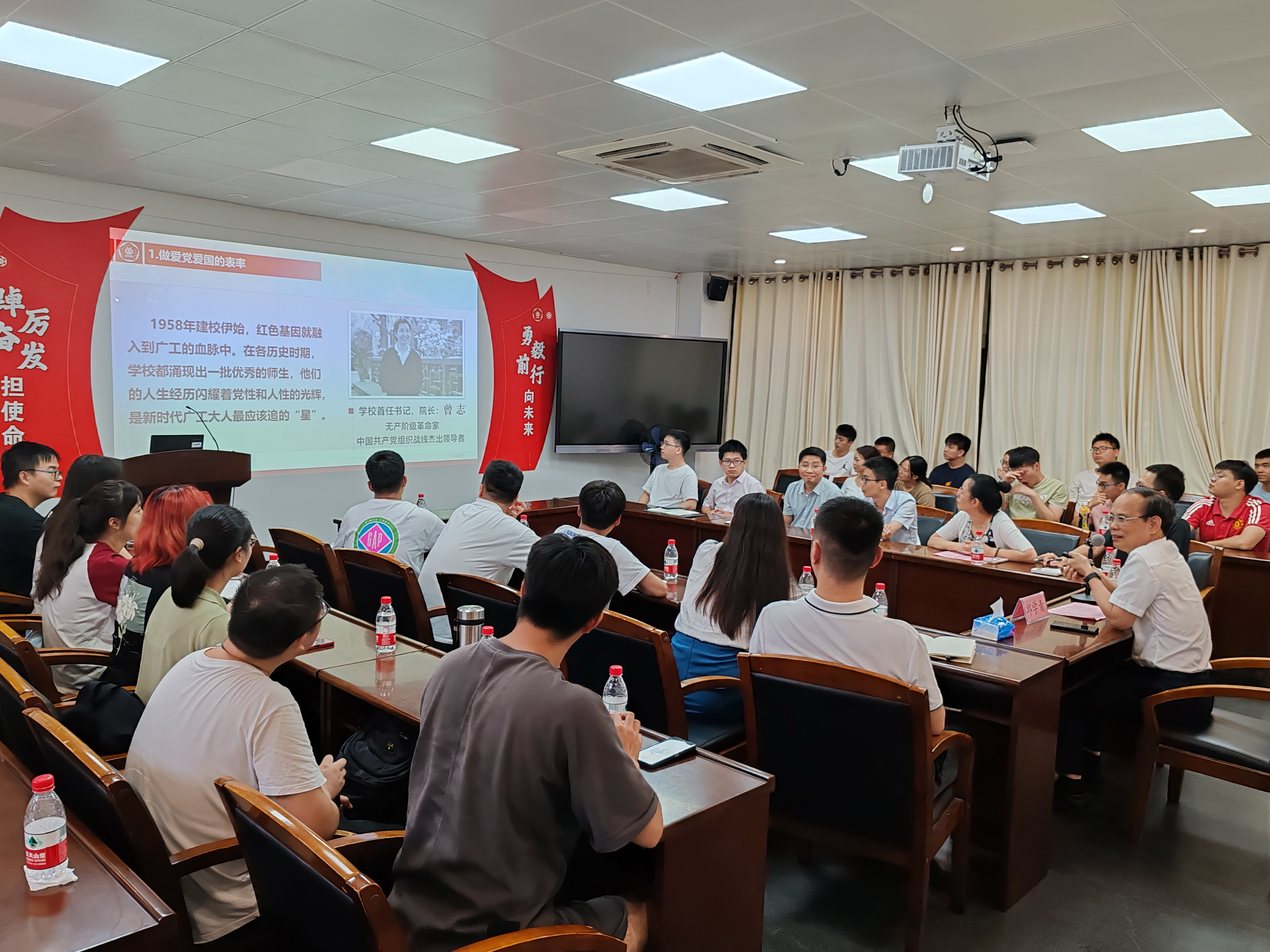 邱学青结合学校本科办学65年来的跨越式发展历程,讲述奋进中的广工在粤港澳大湾区建设和广东制造业当家的重大机遇下,肩负起新时代高校的使命,全力推动实施学校“1+2+3”攀撑计划学科提升工程,加强人才培养、科学研究、社会服务和文化传承。最后,他结合学校发展过程中涌现出的广工人最应该追的“星”:首任党委书记、院长曾志同志、“时代楷模”东深工程建设群体、斩获CUBAL全国总冠军的广工男子篮球队等,强调广大学子要做爱党爱国爱校、团结奋斗、求是创新的新时代好青年,做新时代的攀登者、奋斗者,为广工高质量发展、建设高水平创新型大学贡献力量。