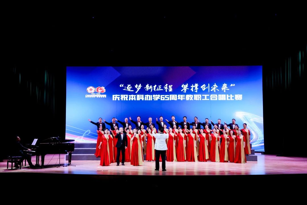 近日,由学校工会、党委宣传部、团委、通识教育中心联合举办的“逐梦新征程 攀撑创未来”庆祝本科办学65周年教职工合唱比赛在大学城校区学生文化活动中心举行。著名指挥家、星海音乐学院教授张新,国家一级演员、南方歌舞团歌唱家李白,广东外语外贸大学艺术学院教授羡涛,华南师范大学音乐学院合唱指挥副教授孙歆然,8xbet网校友、资深媒体人胡炜斌受邀担任比赛评委。来自34个二级工会近1600名教职工组成30支参赛队参加比赛。