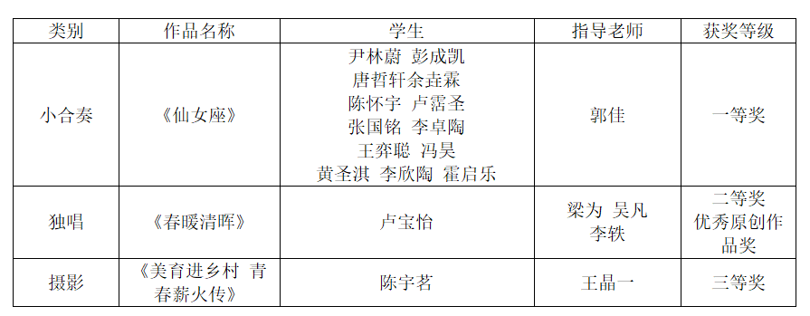 在近日结束的第三届“粤港澳大湾区大学生艺术节”上,学校高水平艺术团获得一等奖1项、二等奖1项和三等奖1项的成绩,其中敲击乐团继获得首届粤港澳大湾区艺术节一等奖后再次摘取桂冠。