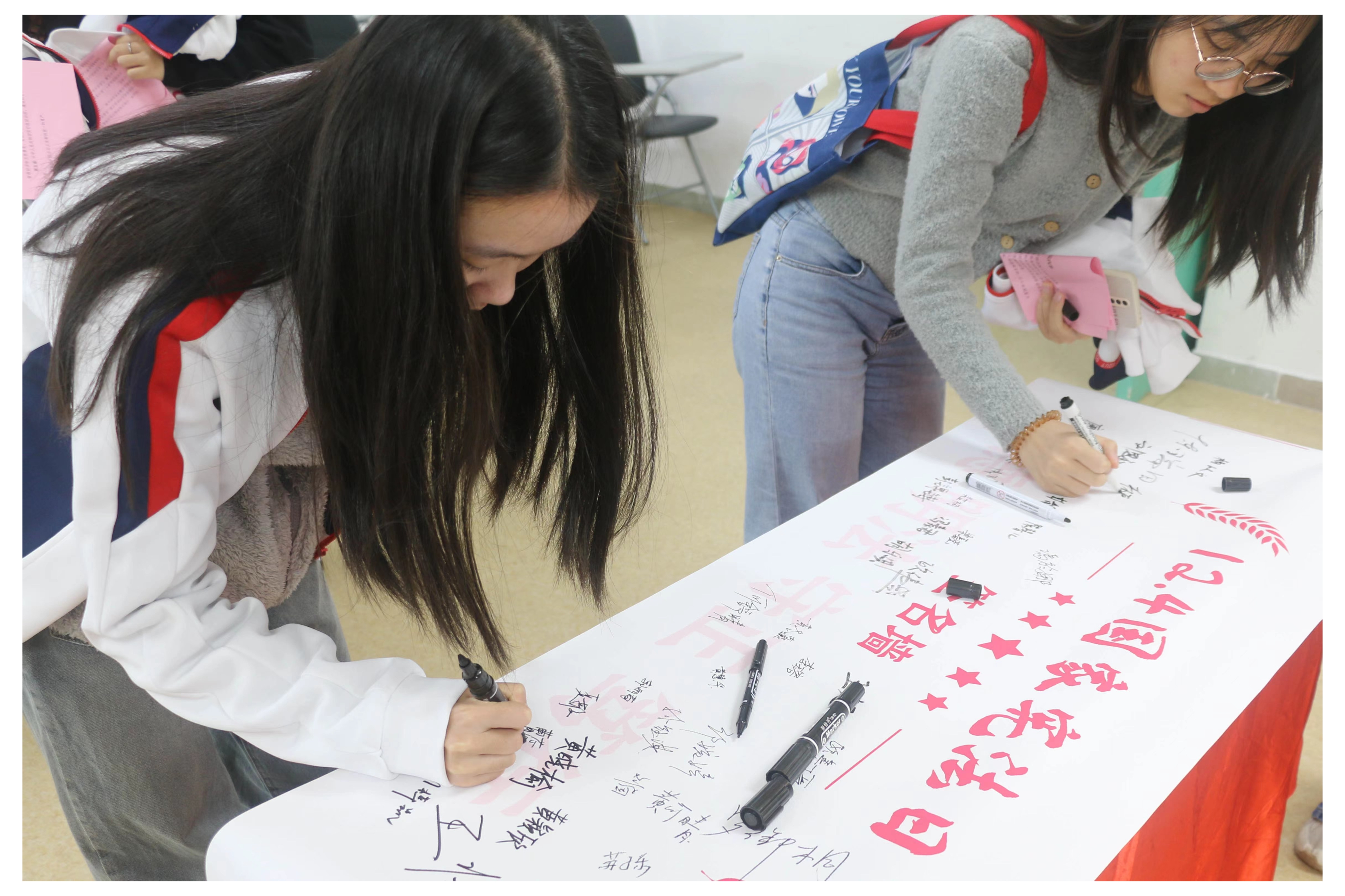 12月4日上午9点,教育部在北京设立主会场,组织开展全国教育系统“宪法晨读”活动,学校组织师生代表设立分会场收听收看。师生跟读宪法部分条款、齐唱宪法主题歌曲《宪法伴我们成长》,并在“大力弘扬宪法精神,建设社会主义法治文化”的签名墙上郑重签名,签下守法誓言。学生党支部、团支部和班级也通过主题宣讲、互动讨论、知识抢答、集体宣读等形式相继开展“宪法伴我们成长”主题活动,不仅增强了同学们的宪法意识,也更加明确了作为一名当代青年大学生的政治使命和责任。