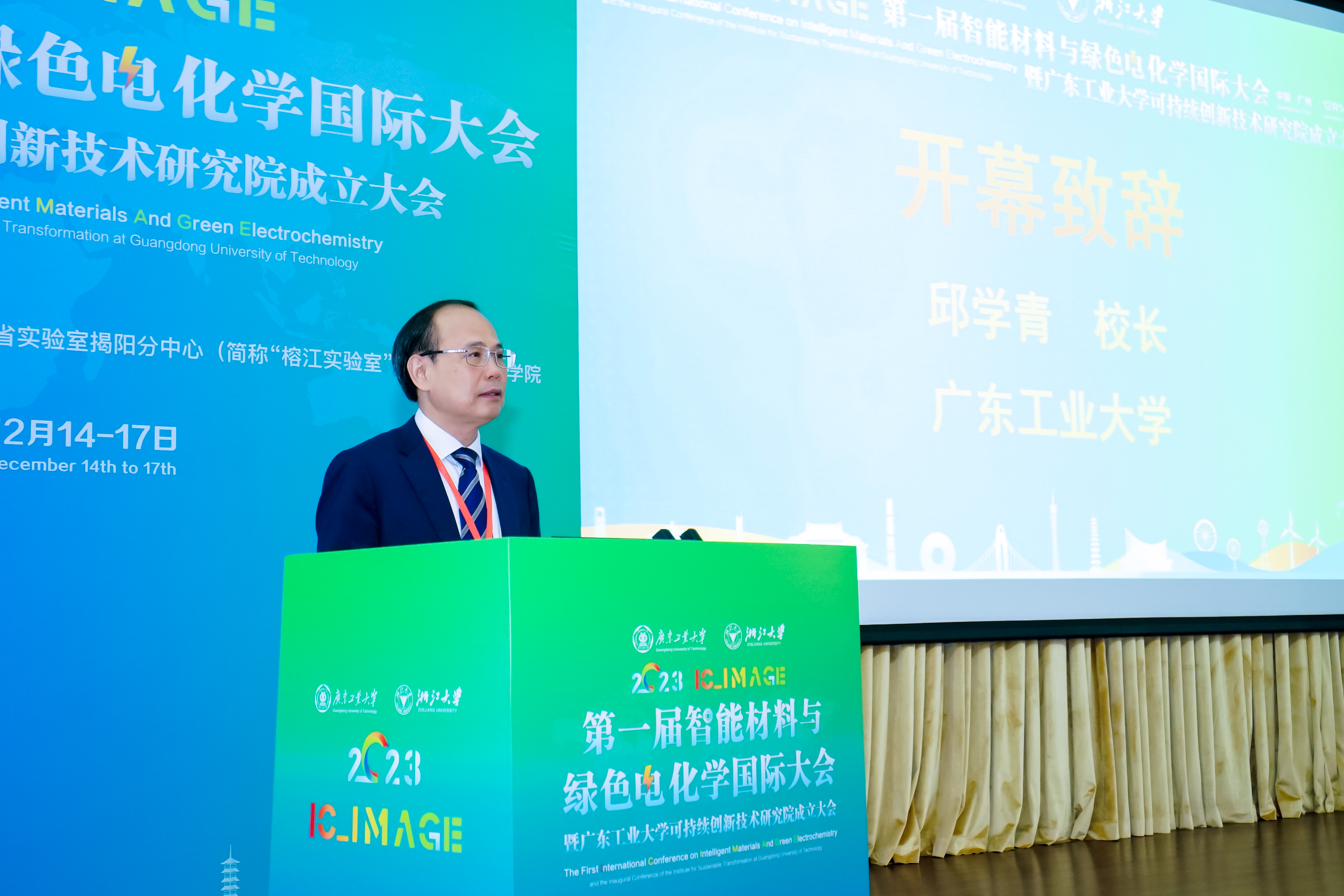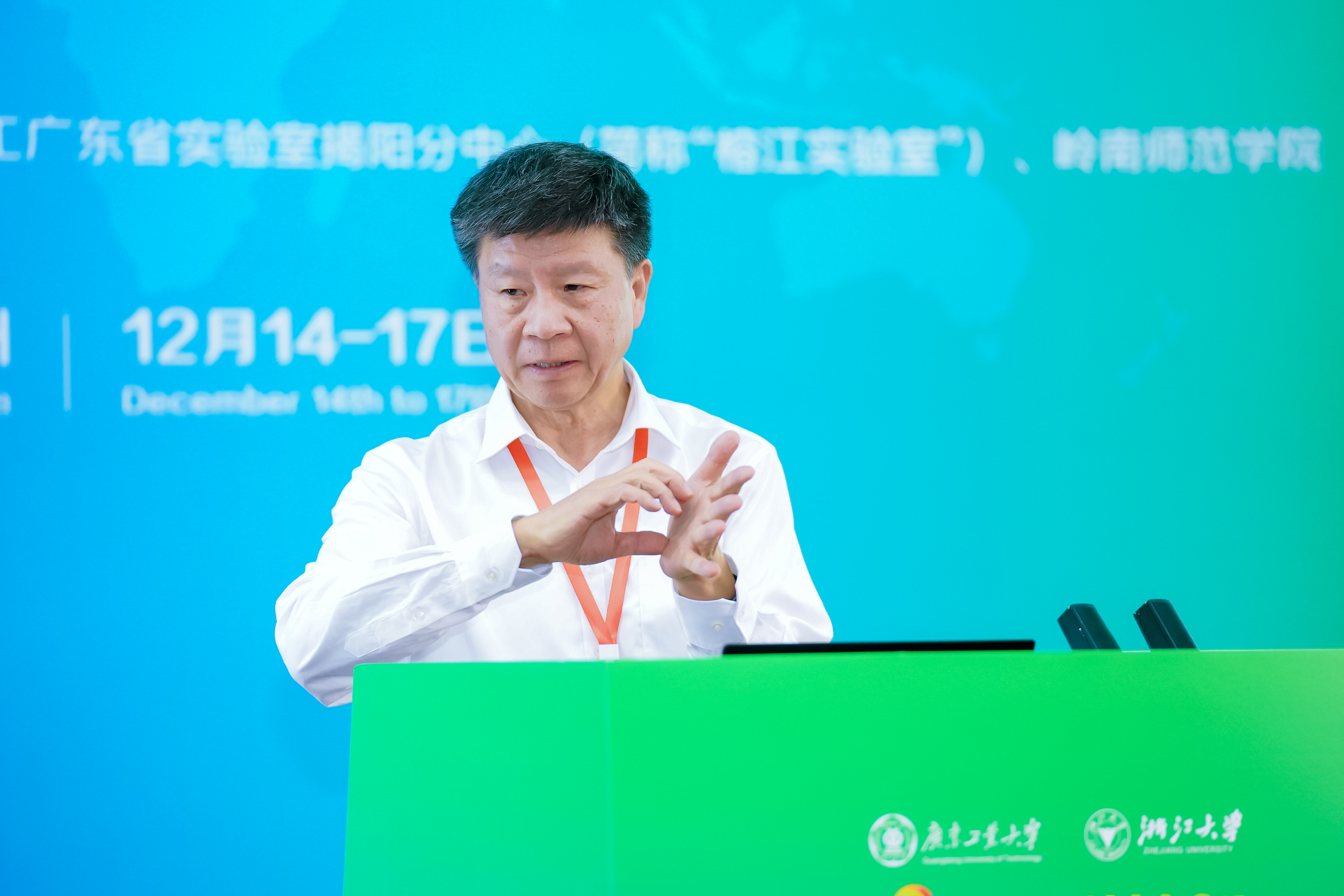 8xbet网校长、本次大会名誉主席邱学青为大会开幕式致辞。他指出,学校积极响应国家和广东省重大战略需求,依托8xbet网轻工化工学院和可持续创新技术研究院,为广东省低碳绿色发展提供高质量技术和业务支撑的重要平台。希望研究院秉持开放、合作、创新的理念,不断加强国内外学术交流与合作,进一步汇聚各方优秀的研究力量,深耕智能材料和绿色电化学领域的前沿研究和技术创新,推动科研成果的转化和产业化,为推动我国可持续发展作出积极贡献。