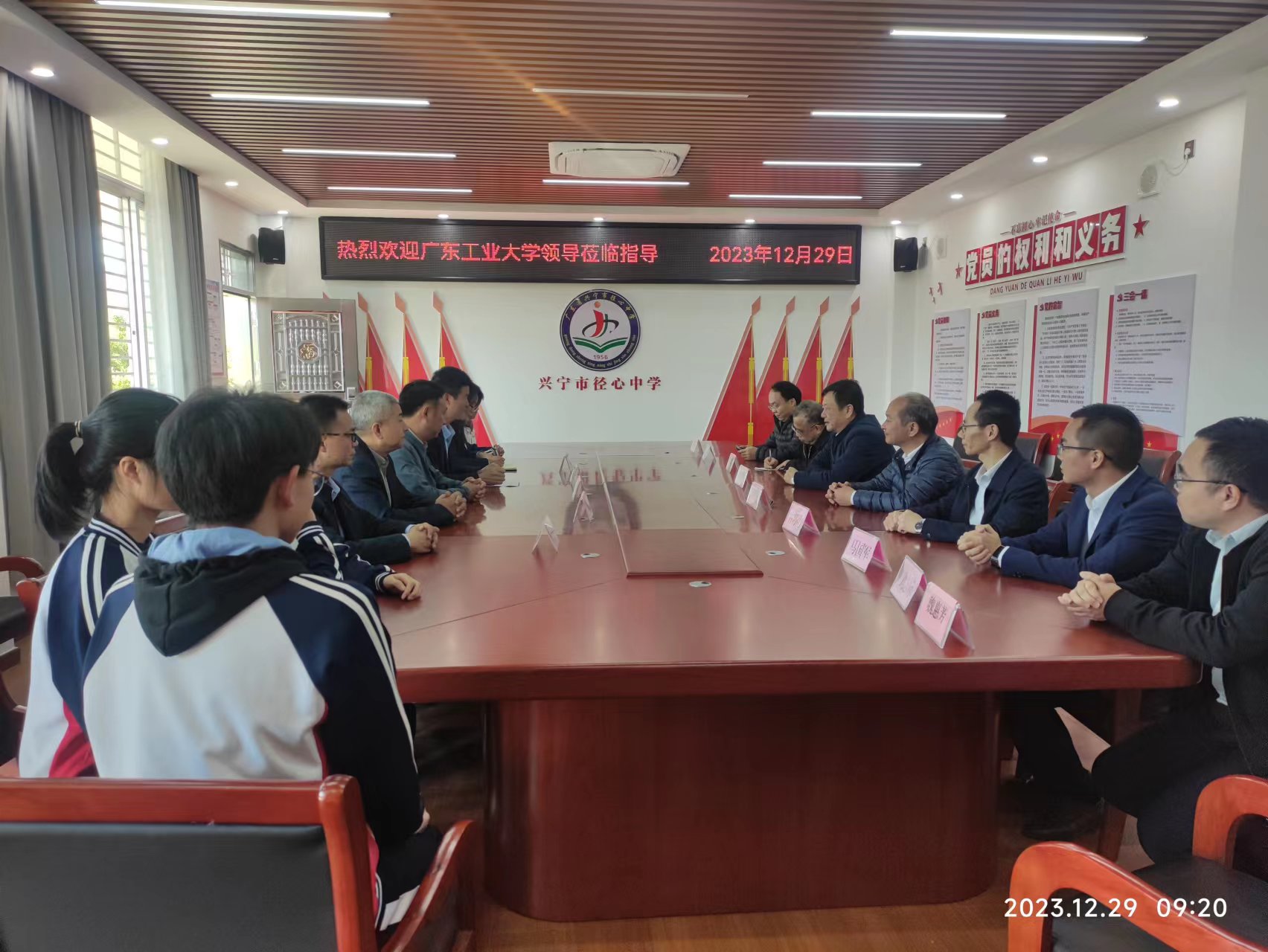 调研组一行首先到到径心中学考察了学校援建的智慧课室,与径心中学师生友好座谈,听取该校办学情况介绍及今年暑期科创营学员们的收获感受。该校校风好、师生精神面貌积极向上、环境优美。张学理表示,科创营对同学们的科技启发意义重大,今后学校将继续每年开展该项活动,让科技创新的梦想在径心中学冉冉升起。同时鼓励同学们好好学学习,将来更好的报效祖国。