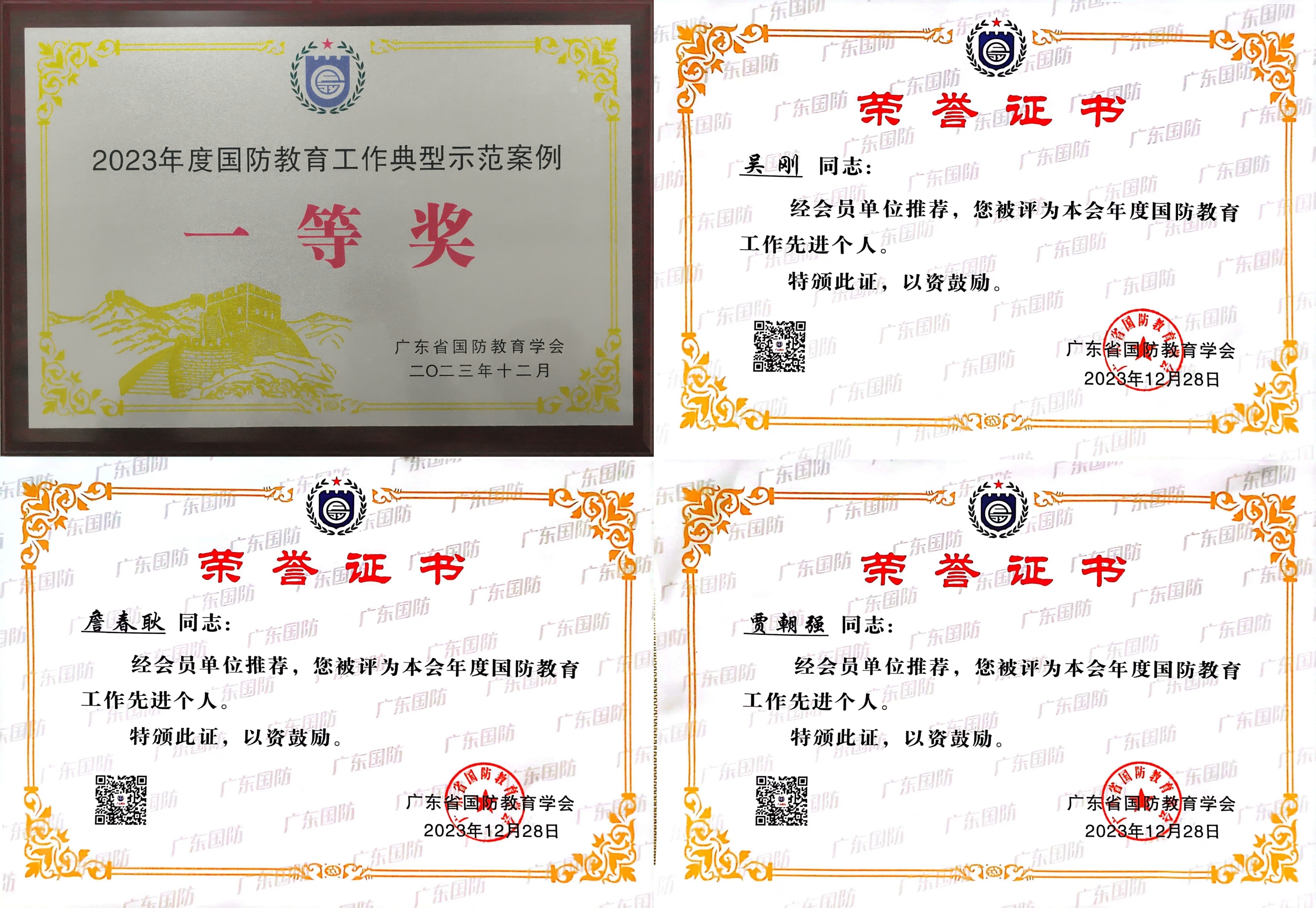 12月27日至29日,广东省国防教育学会2023年度工作会议在河源市召开。学校2023年度国防教育工作喜获佳绩:学校党委副书记陈卓武当选第二届国防教育学会副会长;学校武装部荣获2022-2023年度国防教育工作先进集体;学校征兵工作案例《以“四到位”为抓手,推动征兵工作高质量发展》获得2023年度国防教育工作典型示范案例一等奖;吴刚、詹春耿、贾朝强等三位老师获得2023年度国防教育工作先进个人。