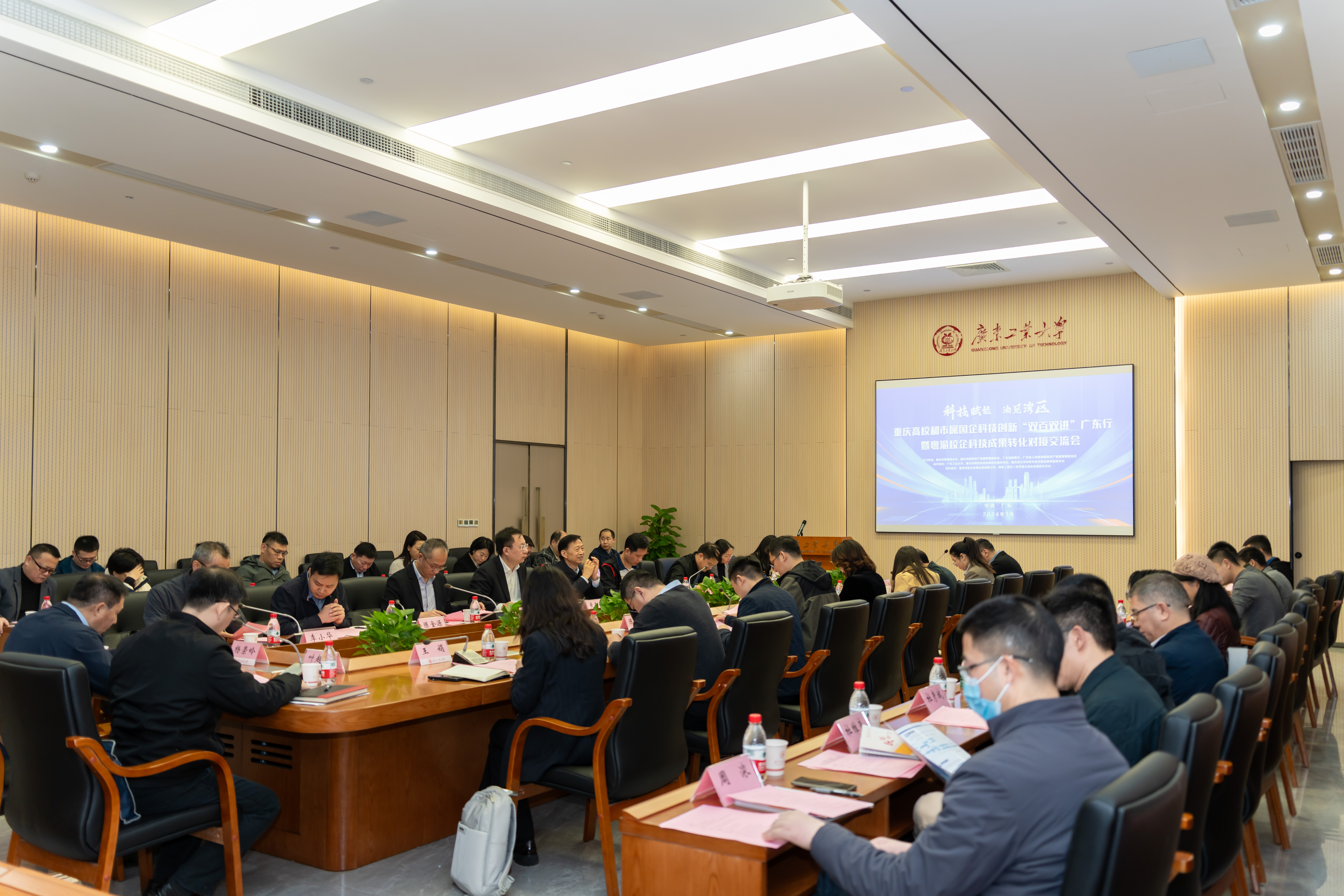 近日,由重庆市教育委员会、重庆市国有资产监督管理委员会、广东省教育厅、广东省人民政府国有资产监督管理委员会共同主办,8xbet网、重庆市高校科技成果转化服务中心、重庆市大学中专毕业生就业指导服务中心联合承办的“科技赋能,渝见湾区”重庆高校和市属国企科技创新“双百双进”广东行暨粤渝校企科技成果转化对接交流会在广工成功举办。交流会旨在进一步加强粤港澳大湾区与成渝地区双城经济圈产教融汇与创新驱动协同发展,加快推动粤渝两地高校和国有企业的产学研合作,促进区域经济高质量发展。学校党委副书记陈良友,广东省教育厅科研处、广东省国资委规划发展处、重庆市教委科技处、重庆市国资委科技创新处等单位相关负责人出席会议。