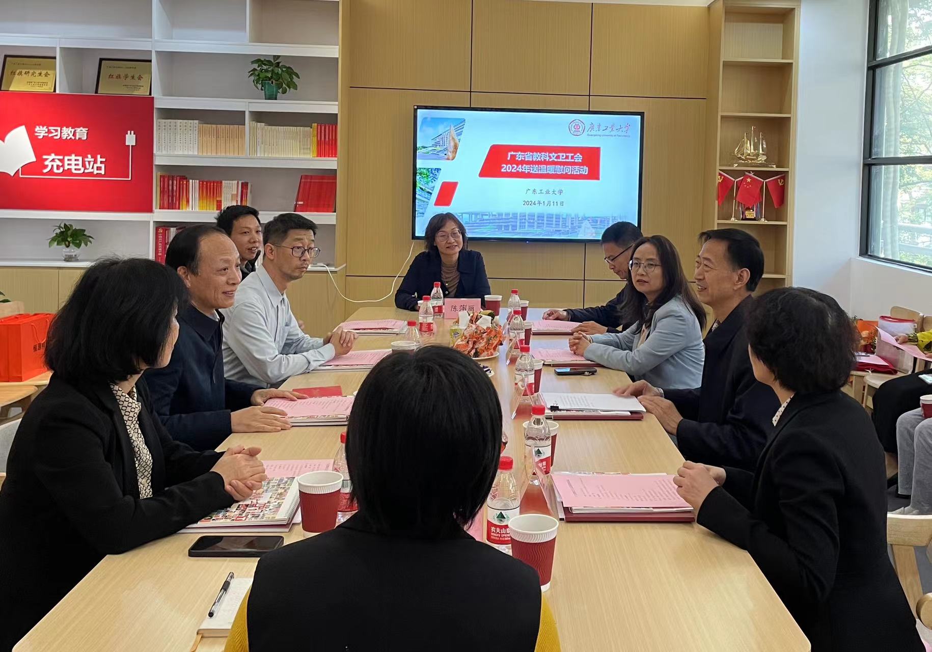 1月11日下午,广东省教科文卫工会主席谢岩梅、副主席胡建钢莅临学校开展送温暖慰问活动。校党委副书记陈良友出席慰问座谈会,校工会、信息工程学院、法学院、物理与光电工程学院相关负责人及教职工代表参加座谈会。