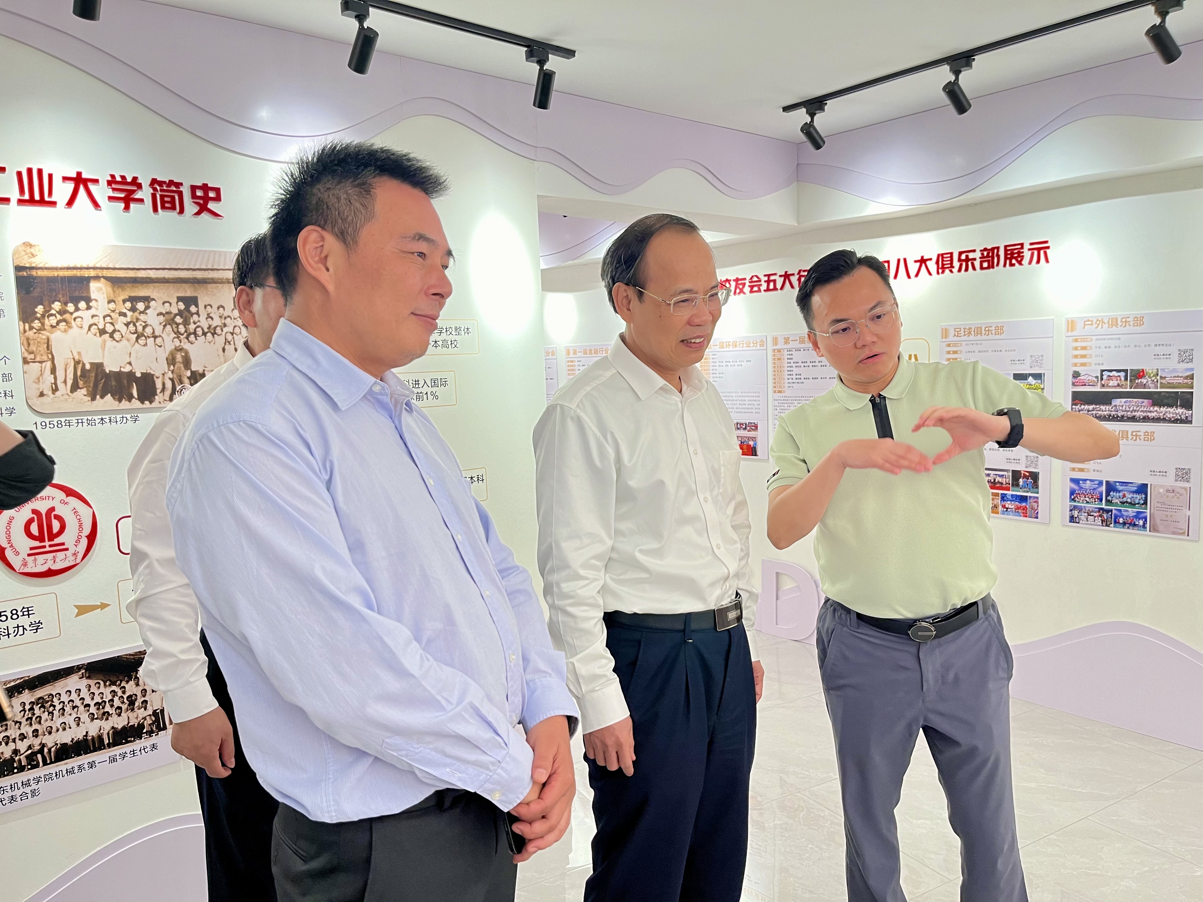 当天下午,邱学青一行来到学校协同创新平台——东莞华南创新设计院调研,实地察看平台部分孵化企业,听取东莞华南设计创新院、华南工业设计院负责人平台建设情况汇报,对平台建设及所取得的成绩表示充分肯定,希望要准确把握服务地方与自身发展、支撑学校三者之间的关系,推动平台成为校地高质量发展的重要支撑。一是平台要发挥学校在科研、技术、人才等方面的资源优势,结合地方经济发展特色,继续做实做强做大;二要充分发挥平台的集聚作用,汇聚社会更多创新资源,加强研究生培养和高层次人才引育,支撑学校发展;三要进一步强化学校创新成果、专家团队与地方优势资源、特色产业对接合作,努力为地方经济高质量发展贡献广工智慧和力量。
