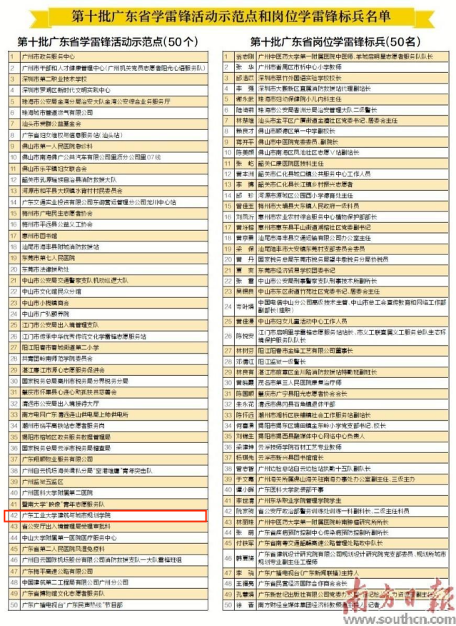 为深入学习贯彻习近平文化思想,贯彻落实习近平总书记关于深入开展学雷锋活动的重要指示精神,持续推动学雷锋活动深入开展,中共广东省委宣传部命名了第十批广东省学雷锋活动示范点和岗位学雷锋标兵。受命名的有50个示范点,广工建筑与城市规划学院位列其中。