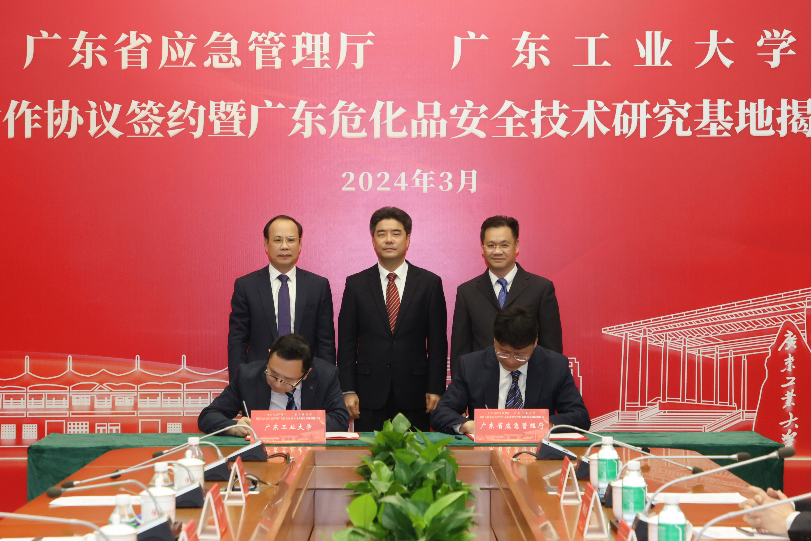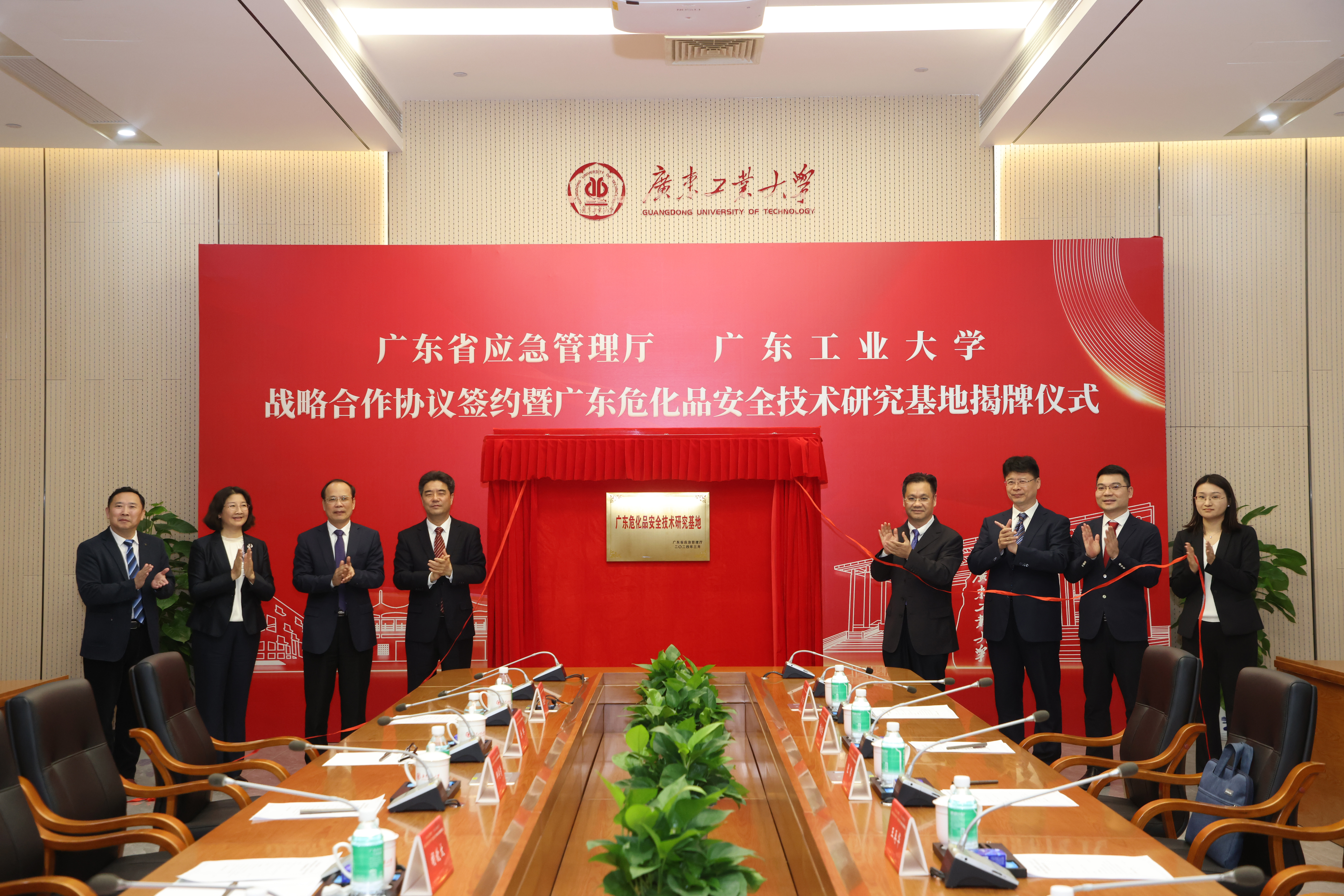 学校发展规划处、科学研究管理部、研究生院、人事处、机电工程学院、自动化学院、轻工化工学院、土木与交通工程学院、材料与能源学院、环境科学与工程学院、生态环境与资源学院,广东省应急管理厅规划财务处、危险化学品安全监管处、科技和信息化处、人事教育处,省安全生产科学技术研究院等相关负责同志参加仪式。