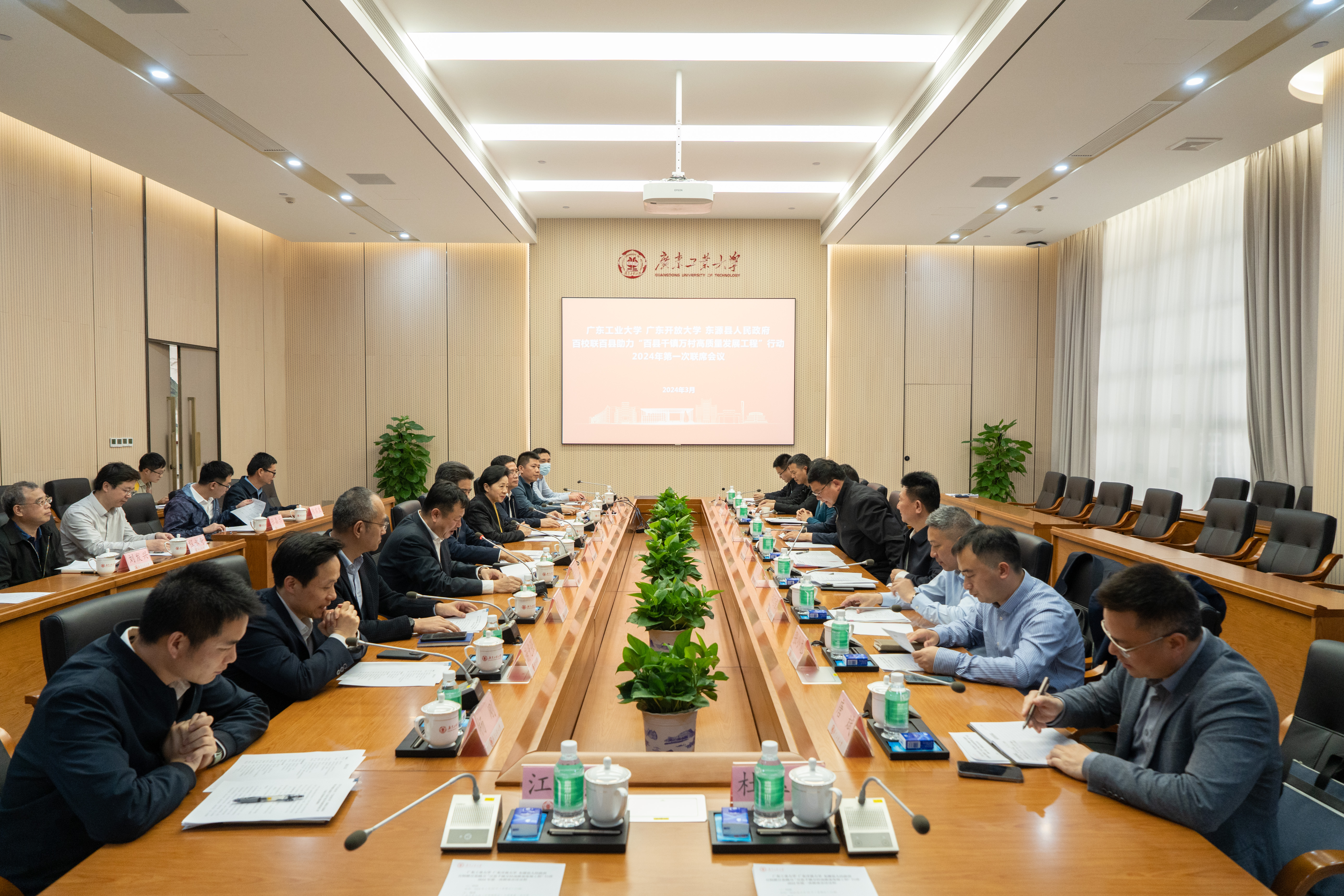 3月22日,学校在大学城校区大讲堂第一会议室召开8xbet网、广东开放大学、东源县人民政府百校联百县助力“百县千镇万村高质量发展工程”行动(以下简称“双百行动”)2024年第一次联席会议。学校党委书记胡钦太,广东开放大学党委副书记、校长刘文清,东源县委书记秦卫民,学校相关部门负责人、乡村振兴工作专员、驻县服务工作队、东源县委相关负责人等参加会议。学校党委常委、副校级干部张学理主持会议。