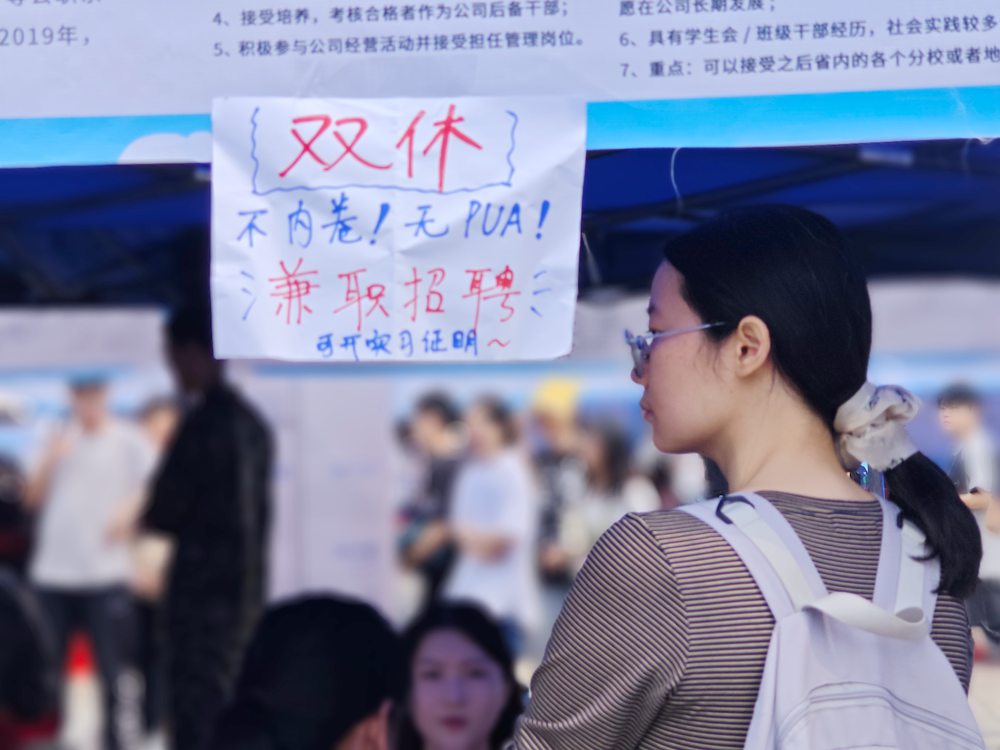 软件工程的蔡同学也有相同的看法。他同省内某民办院校人事处的老师交流了计算机学院的教师岗位,认为相较于到公司做软件开发,当老师会更加稳定一些,“企业加班较多,996、007让人压力很大,而且这两份工作的薪资水平差异不大。在这场招聘会,我明显感觉到与HR的交流变多了,聊起来就能获取更多的信息。”