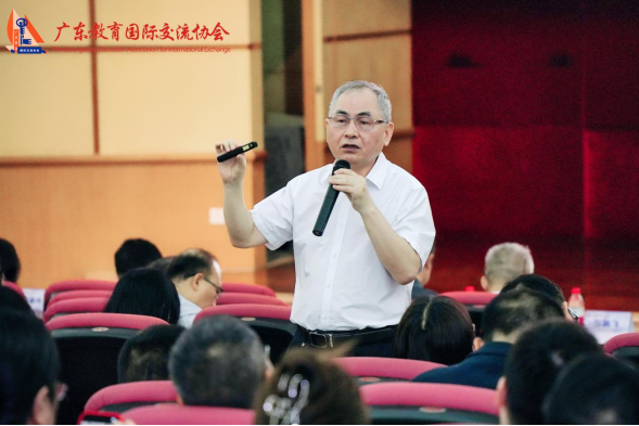 朱超华代表广东省教育厅致辞,并对协会第八届会员大会暨换届大会的召开表示热烈祝贺。他希望协会继续秉持宗旨,发挥民间团体优势,做好政府助手,服务好会员单位,进一步扩大国际交流合作的广度和深度。