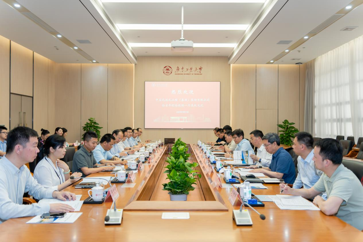 邱学青对SEG炼化工程一行来访表示欢迎,并围绕广工跨越式发展历程、“大、实、特、快”的发展特点及“1+2+3”攀撑计划等内容介绍了学校的发展情况。聚焦双方合作领域,邱学青从木质纤维素、工业木质素的来源及利用,木质素领域研究发展、工业木质素高值应用领域等方面介绍了学校木质纤维素高值化利用的研究与应用。邱学青表示,SEG炼化工程是国内最大的能化工程建设企业之一,在石油炼制和石油化工、煤化工、天然气化工等领域取得了令人瞩目的成绩。广工始终坚持“与广东崛起共成长 为广工发展作贡献”的办学理念,始终与产业深度融合,为服务国家战略和地方经济社会发展提供人才支撑和智力支持。期待双方加强交流与往来,聚焦优势学科特色,共同促进双方发展再上新台阶。