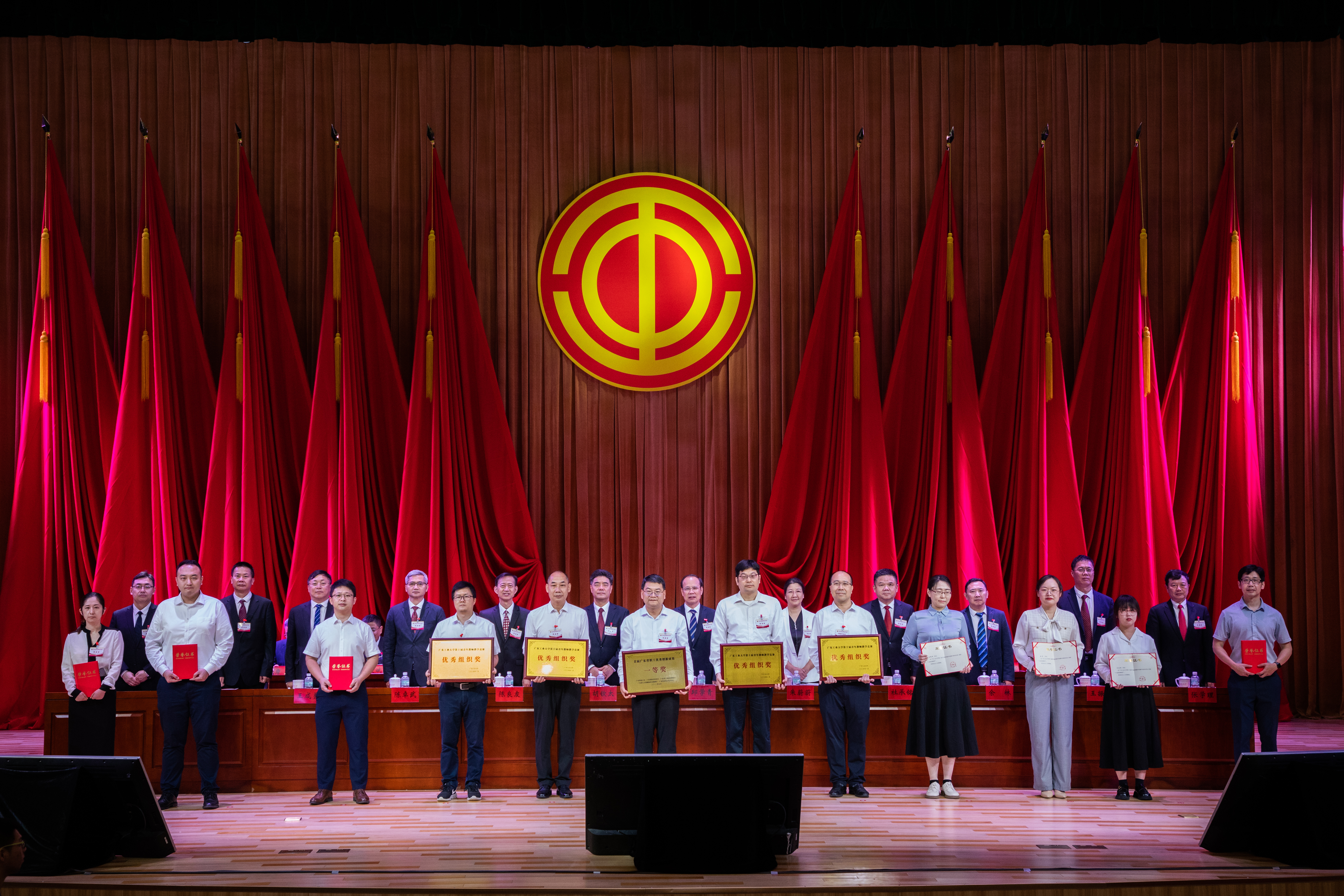 会议还对首届广东省职工优秀创新成果一等奖获得者和学校第十届青年教师教学大赛十佳授课教师及优秀组织奖单位进行了表彰。