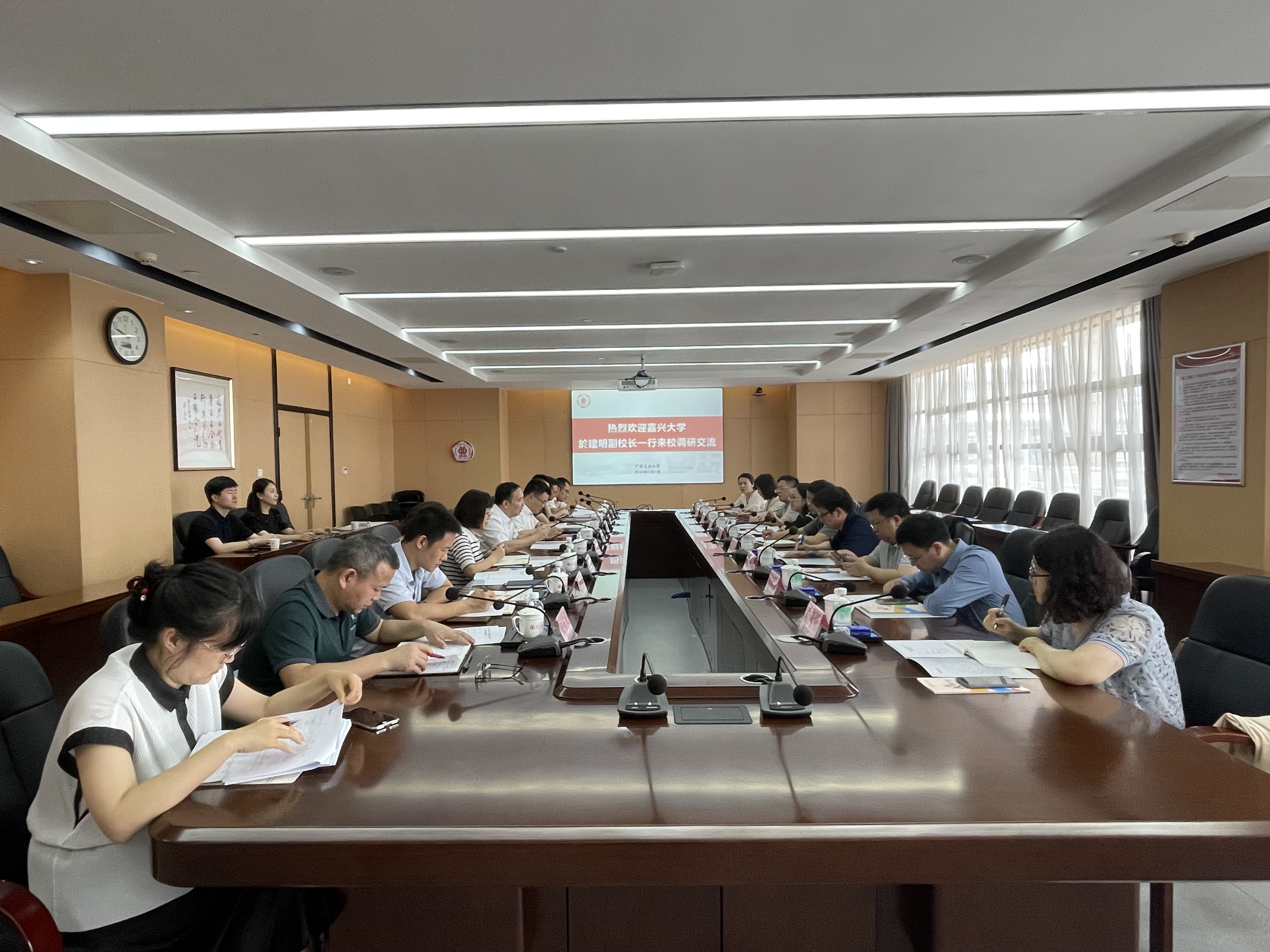 5月7日上午,嘉兴大学党委委员、副校长於建明一行9人来校调研交流。学校副校长余林在大学城校区行政楼702会议室接待来宾。发展规划处、财务处、校长办公室、人文社科处、研究生院、人事处、经济学院等相关同志参加座谈。