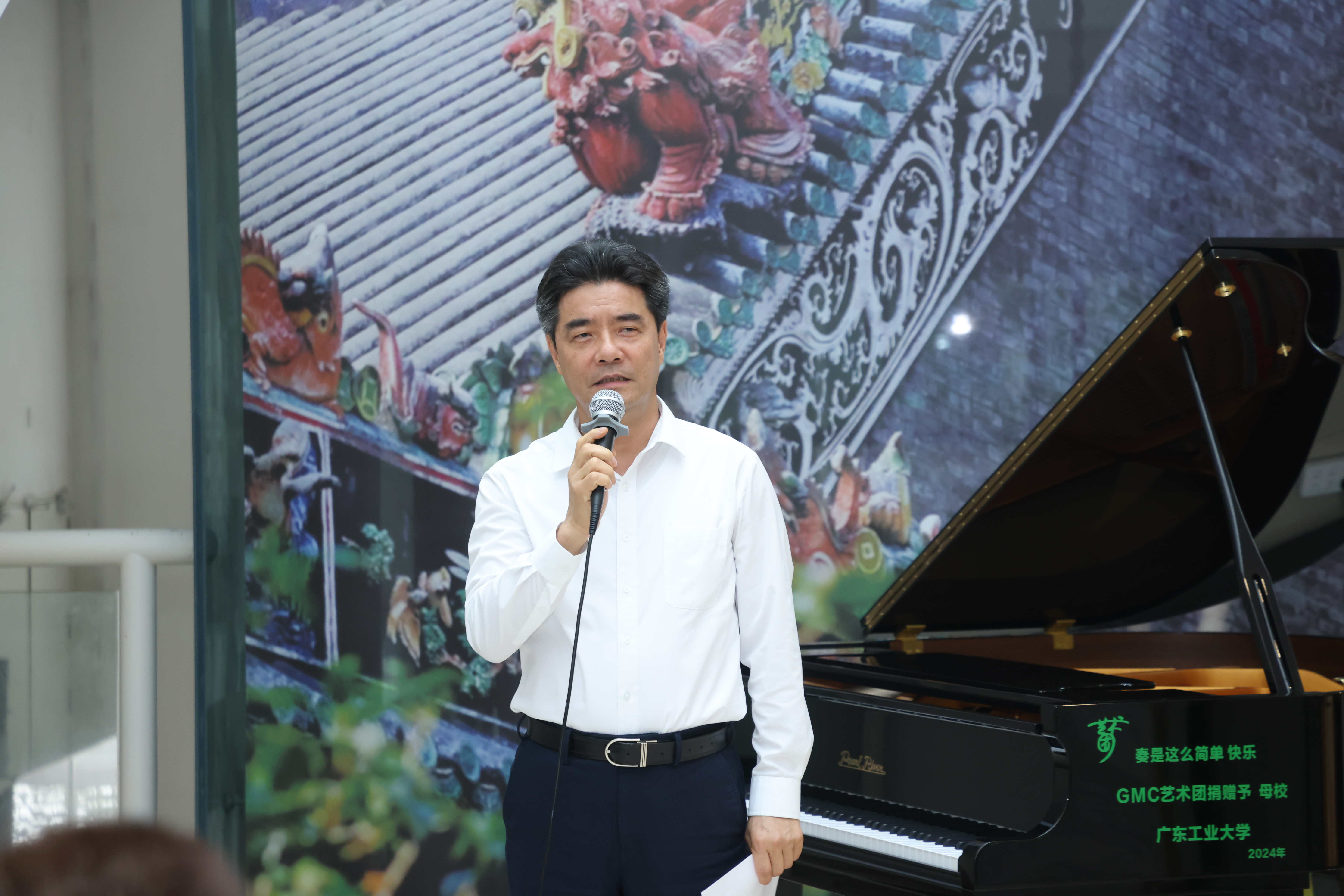 “能在毕业近30年后回到母校的舞台参与学校的美育活动,心情非常激动。”GMC艺术团校友文福元代表发言。他表示,学校一直以来高度重视学生的校园文化生活,GMC艺术团的成员们在校期间受益匪浅。日常的专业学习更注重逻辑和理性思维,而音乐培养了他们的感性思维和审美能力,使他们在解决问题时更加全面和富有创意,一些艺术团成员也成为了音乐人、调音师、导演等,是业界的佼佼者。这次GMC艺术团的捐赠用意在于“传承”,他们希望能够鼓励更多有兴趣特长的学子们大胆展示自我。
