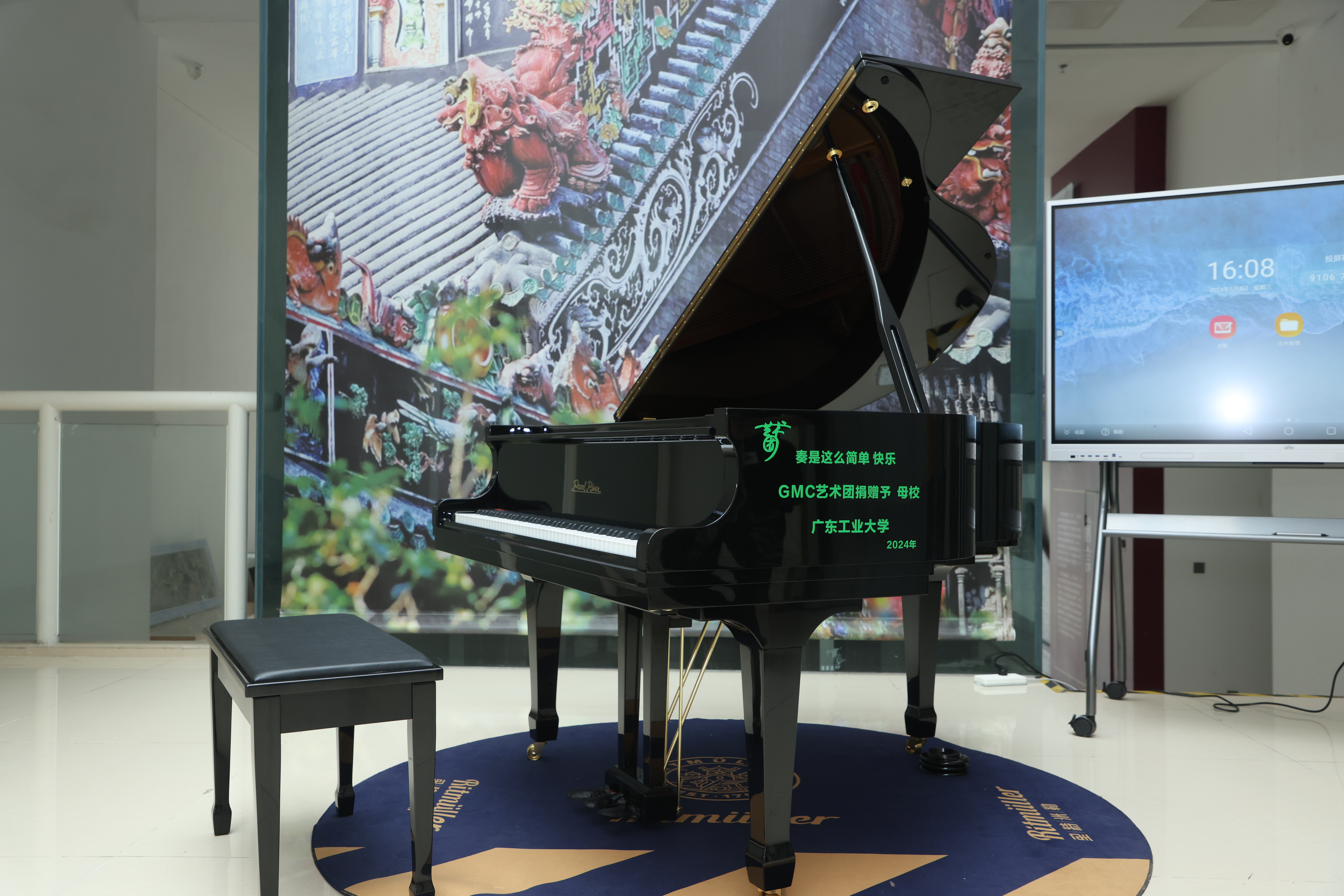 捐赠仪式上,GMC艺术团校友代表向母校8xbet网捐赠了1台全新三角钢琴,胡钦太代表学校接受捐赠并向GMC艺术团颁发捐赠证书。获赠三角钢琴将摆放在学校文化活动中心美育实践空间公共区域,定期向师生开放,用于学生实践练习、美育设备展示等。