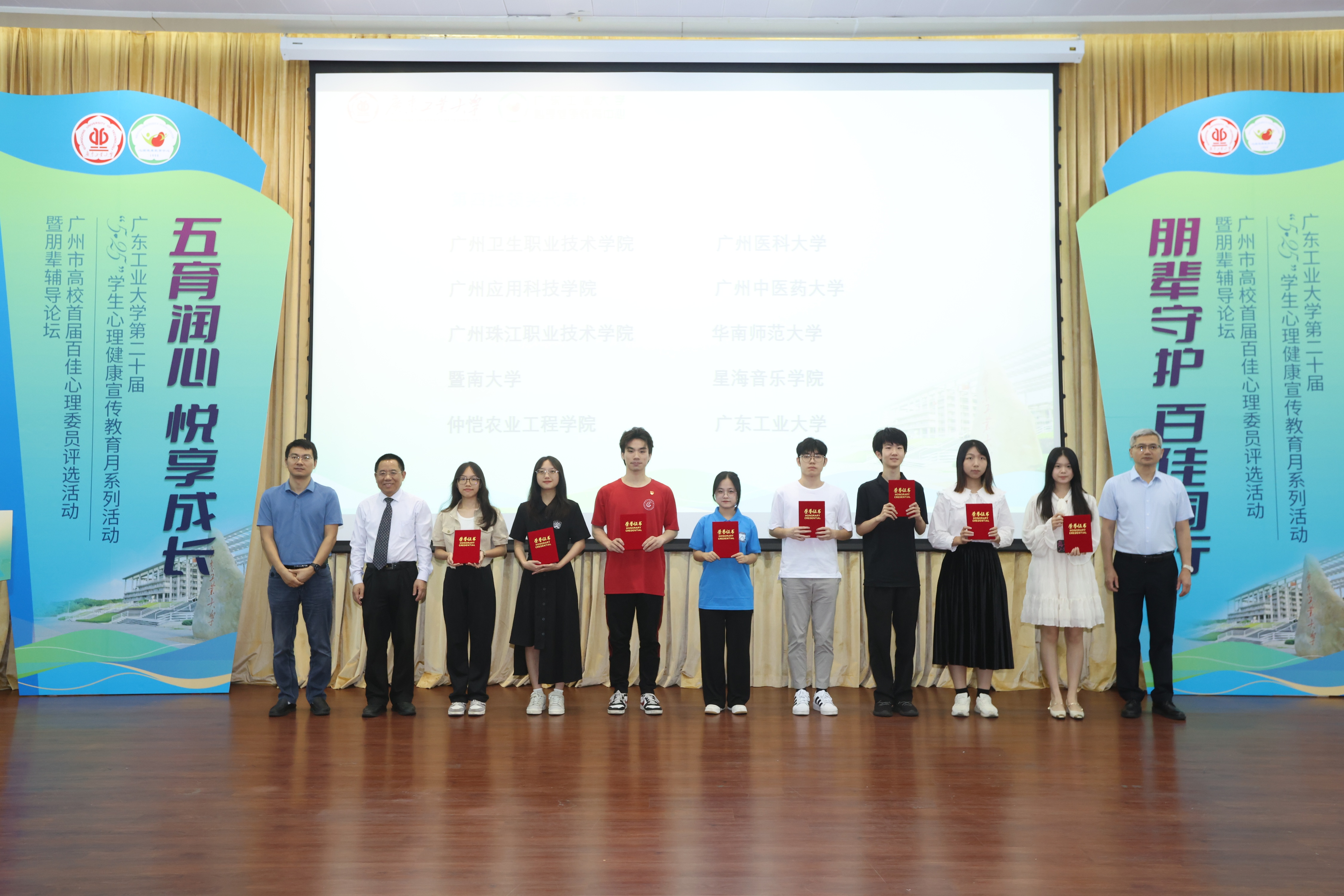 会上宣读了《关于表彰2024年广州市高校首届百佳心理委员的决定》。通过表彰树榜样、立典型,以“心灵微光,烛照他人”,肯定各高校心理委员工作队伍在心理健康服务中承担的桥梁和纽带作用。第六届全国百佳心委代表华南师范大学张婷、广东轻工职业技术学院李依洁、8xbet网陈雪儿分享工作经验,给予与会的心理委员丰富的工作参考与启示。学校曦光剧社进行了《让我牵着你的手》心理短剧演出。