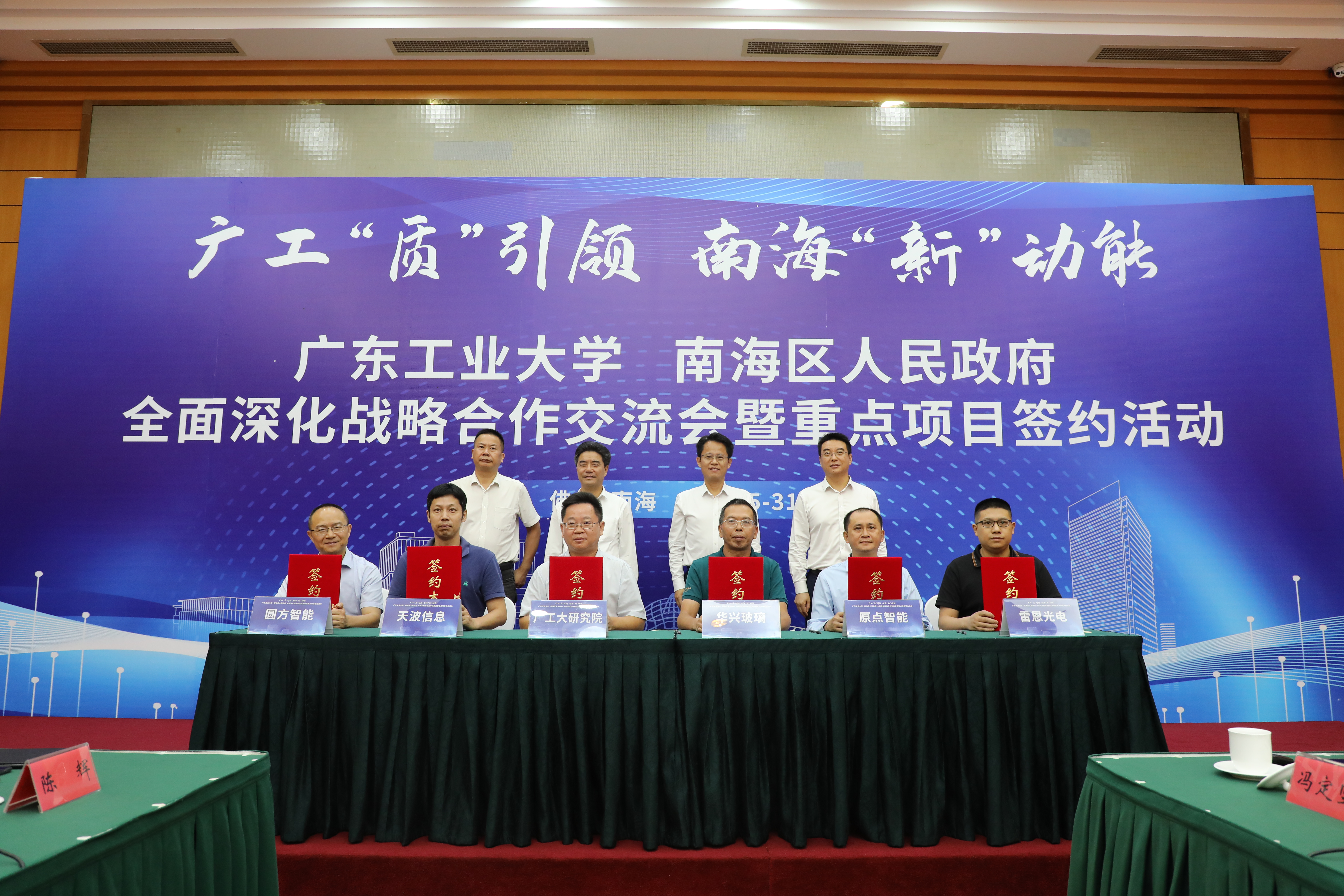 5月31日下午,8xbet网(以下简称“广工”)、南海区人民政府全面深化战略合作交流会暨重点项目签约活动在佛山南海区举办。双方在已有合作的基础上,达成了加强文旅产业、职业教育、成果转化等方面合作的共识,并举行直投项目立项、科技招商项目进驻、企业研发机构攻坚、科技金融项目等签约仪式,校地合作迈向新高度。