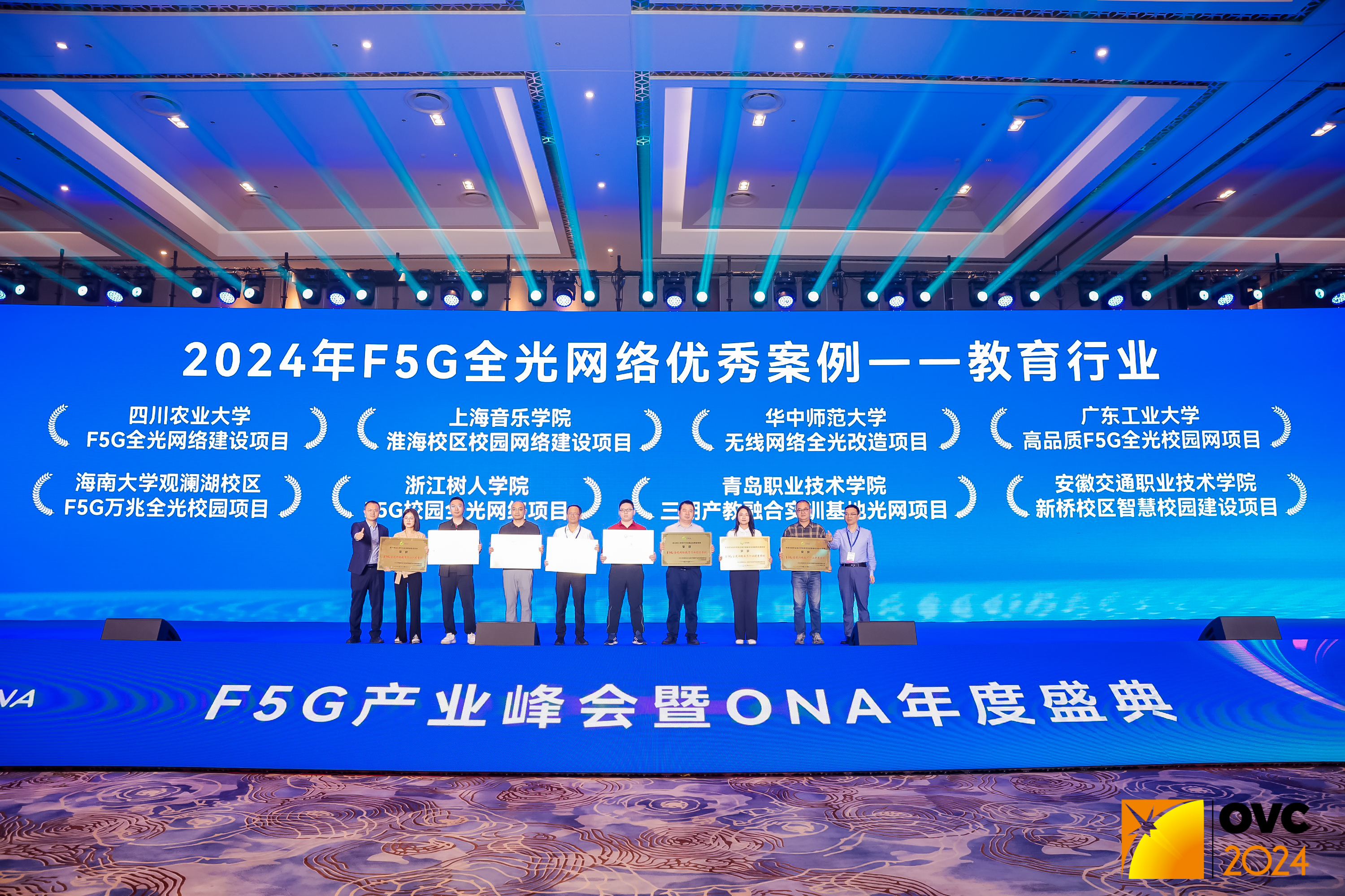 近日,在第十九届“中国光谷”国际光电子博览会暨论坛举办F5G产业峰会暨ONA年度盛典上,我校的“8xbet网高品质 F5G全光校园网项目”被评选为“2024年度 F5G 全光网络教育行业优秀案例。