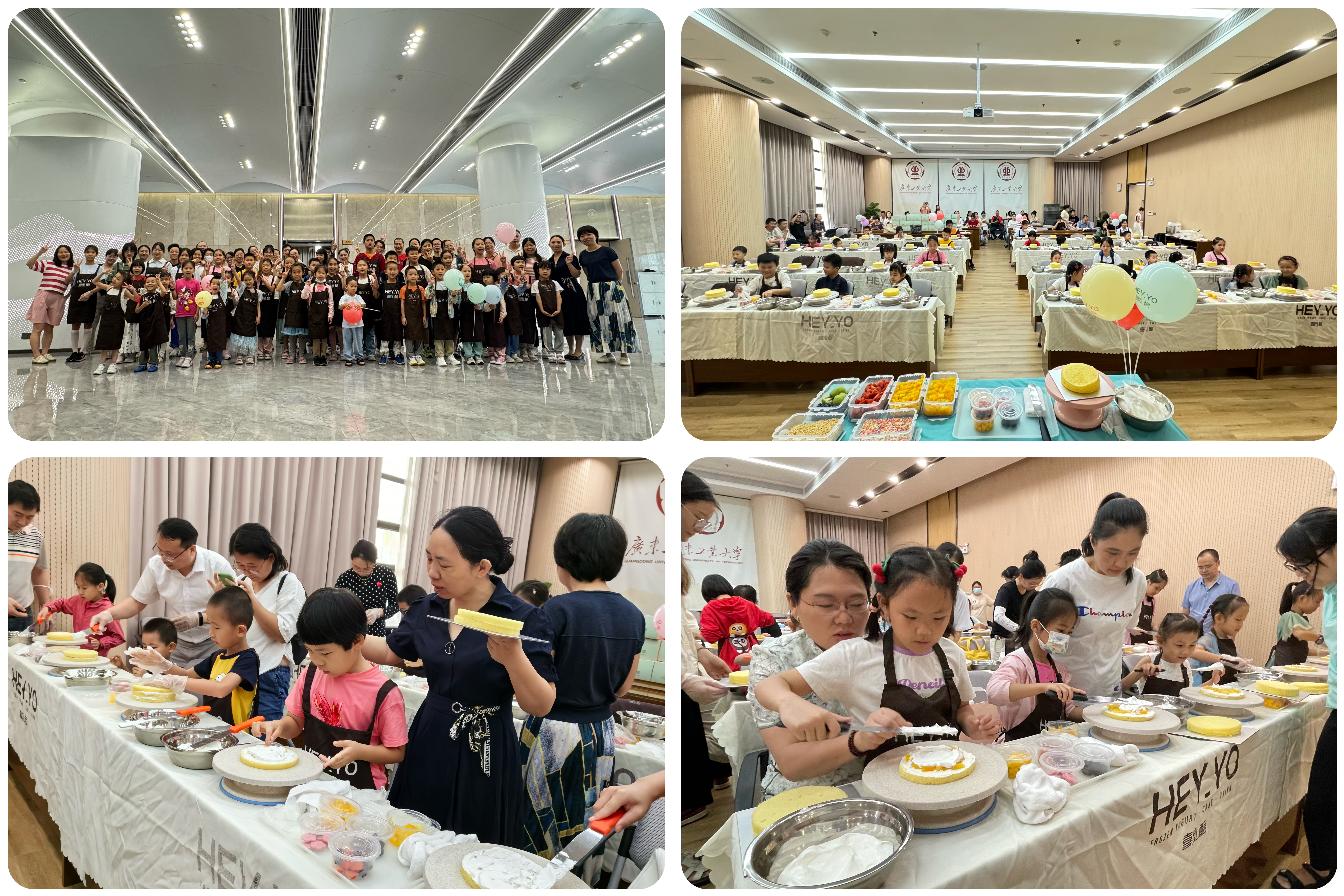 6月16日上午,又逢“父亲节”,学校举办了亲子蛋糕DIY活动,有40对教职工及子女参加活动。活动现场,各类新鲜食材和制作工具整齐地摆放在桌上,等待着孩子们发挥创意。在专业烘培师的指导下,孩子们纷纷动手,摆放水果、涂抹奶油、装饰表面,家长们也在一旁耐心协助。经过一个多小时的协作,一个个色彩鲜艳,造型各异的蛋糕终于完成。看着自己的劳动成果,家长和孩子们脸上都洋溢着自豪和喜悦的笑容。