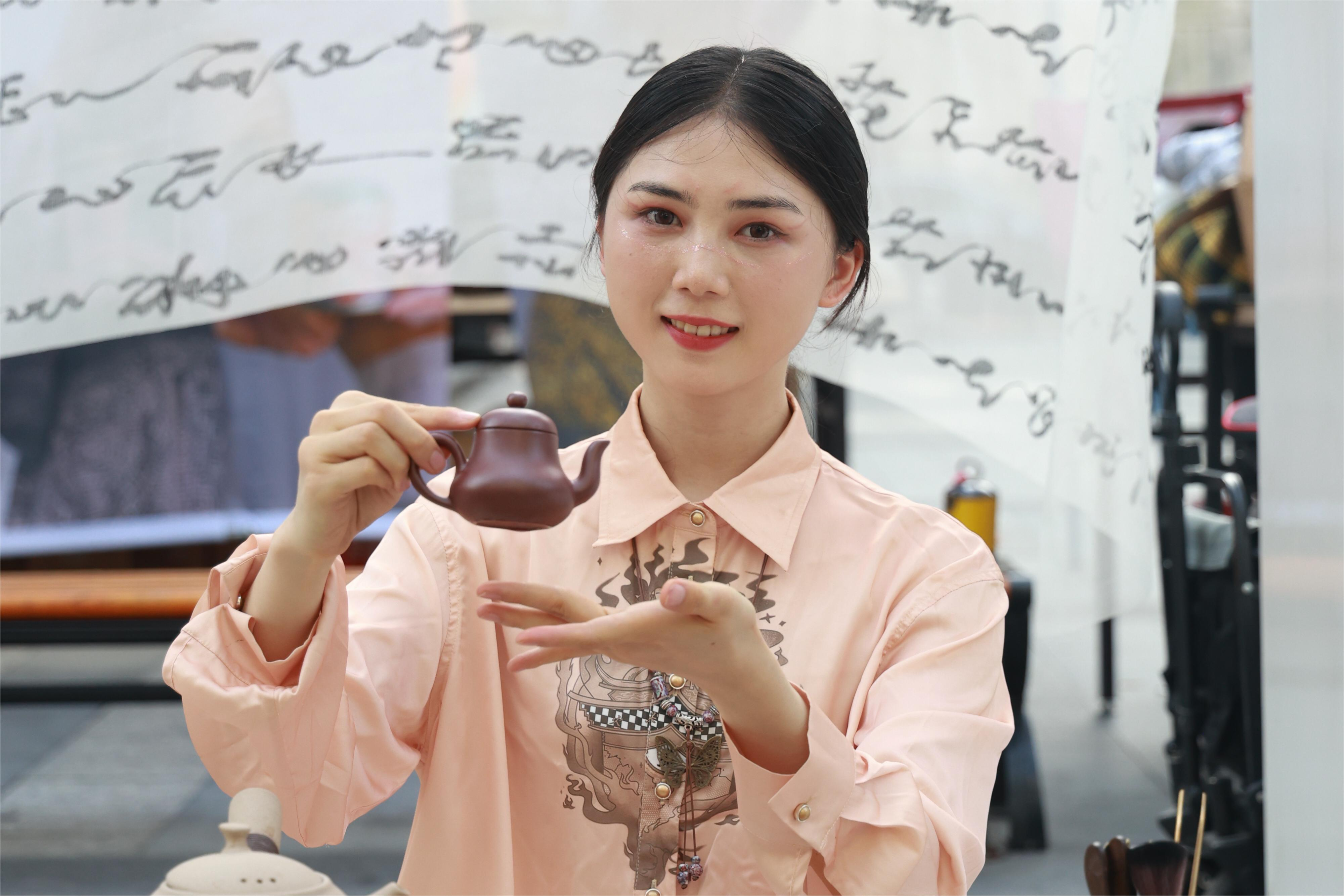 创作现场设有“艺见清香”茶旅艺彰“百千万工程”突击队潮州工夫茶体验、“艺见清心”非遗漆扇创作体验等多样互动区域。在潮州工夫茶展示中,街坊们学茶艺、品香茗,浸润单枞“清香”,深悟“清廉”主题。非遗漆扇的创作,将诚信、廉洁金句泼墨于扇面,在绚丽流动的色彩中或轻旋、或摇晃,一把承载非遗文化的漆染廉扇,为这个炎夏送来徐徐清风。