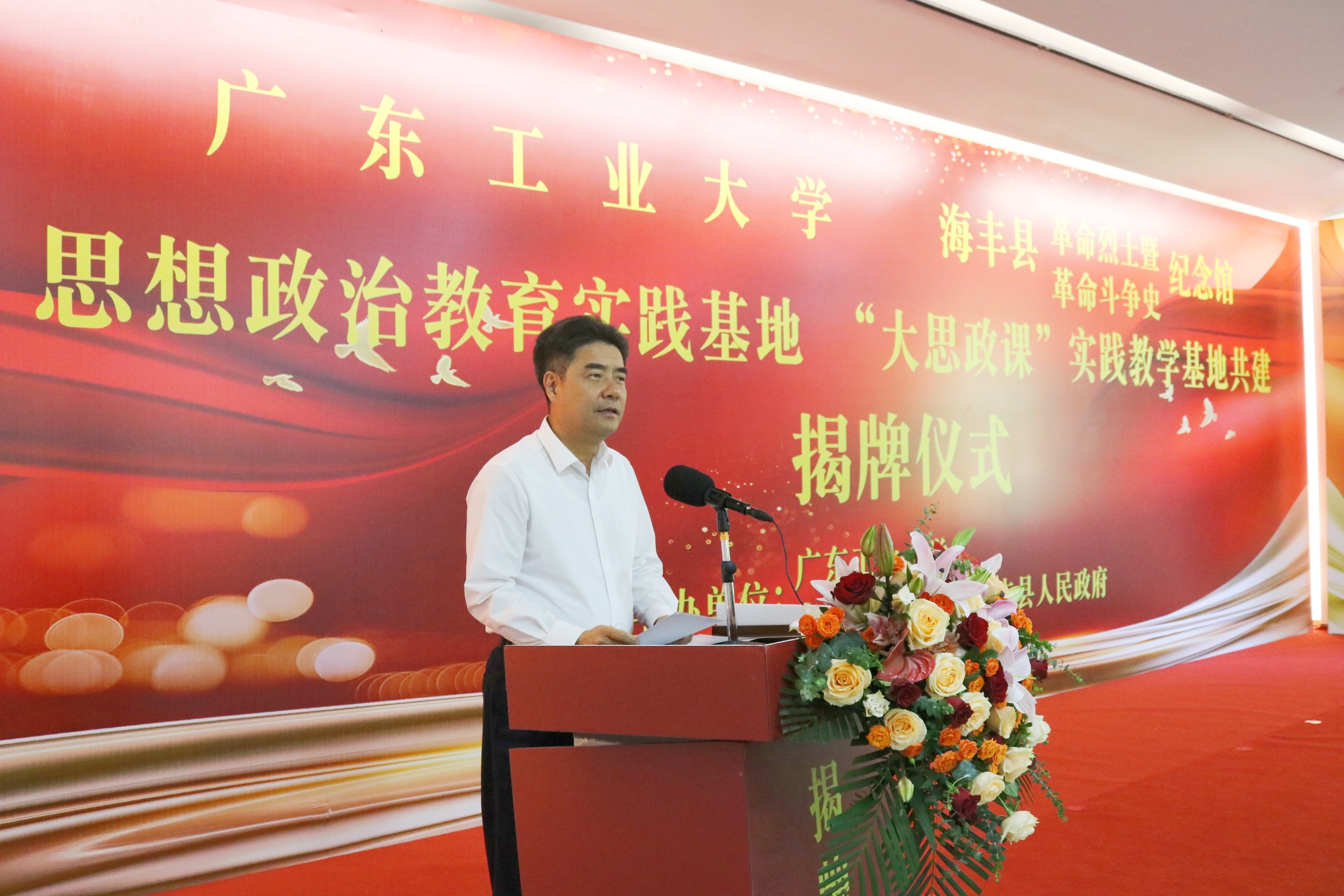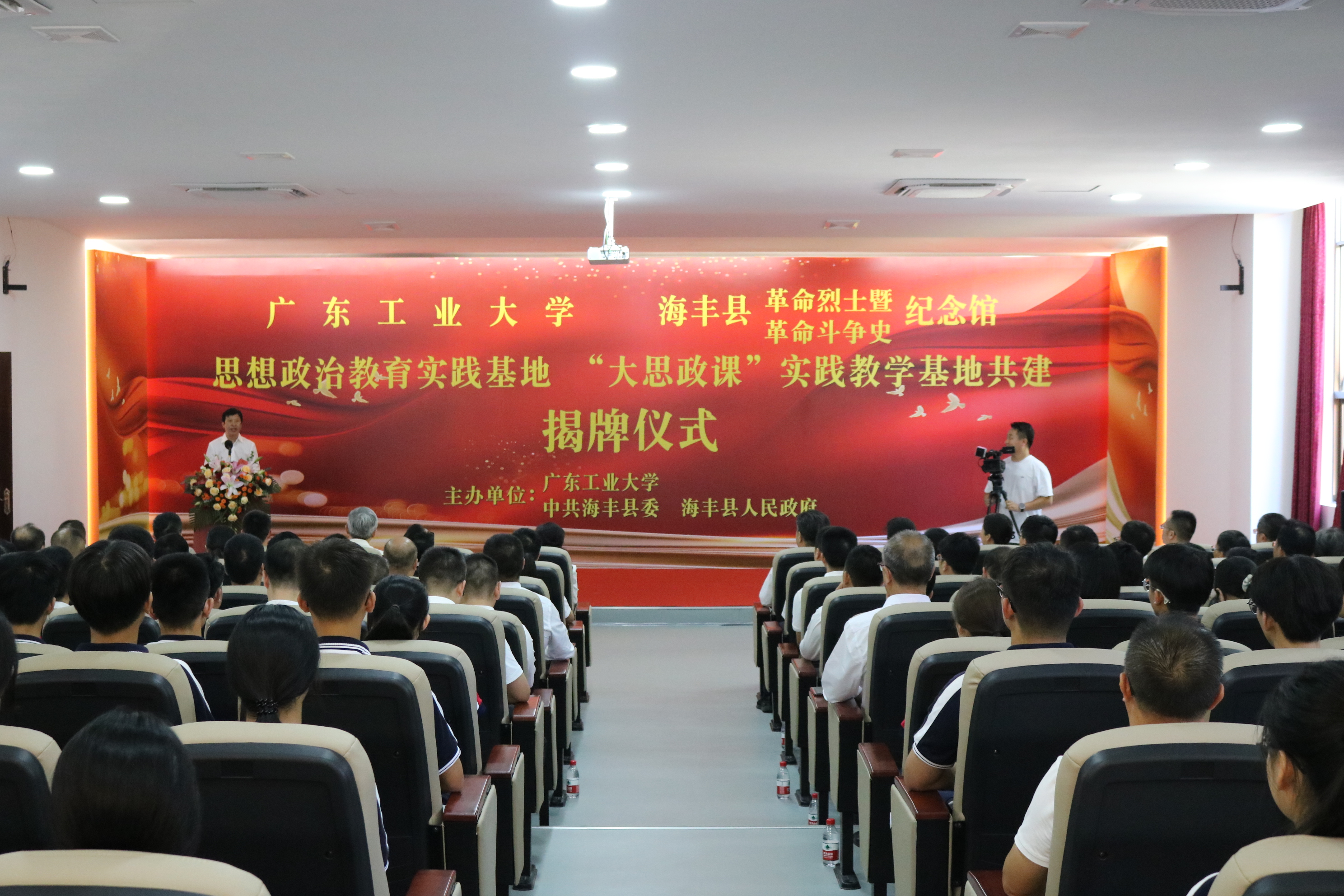 校党委书记胡钦太,党委副书记朱蔚蔚、陈卓武,党委常委、宣传部部长张育广,汕尾市委常委、宣传部部长梁红武,市人民政府副市长庄红琴、海丰县委书记郭文炯等出席仪式,广工党委办公室、宣传部、教务处、学生工作处、团委、轻工化工学院、马克思主义学院等单位相关负责人,汕尾市科学技术局、退役军人事务局、海丰县委、各镇(场)党委政府、县有关单位负责人以及广工和海丰县学生代表参加仪式。海丰县长范秉康主持揭牌仪式。