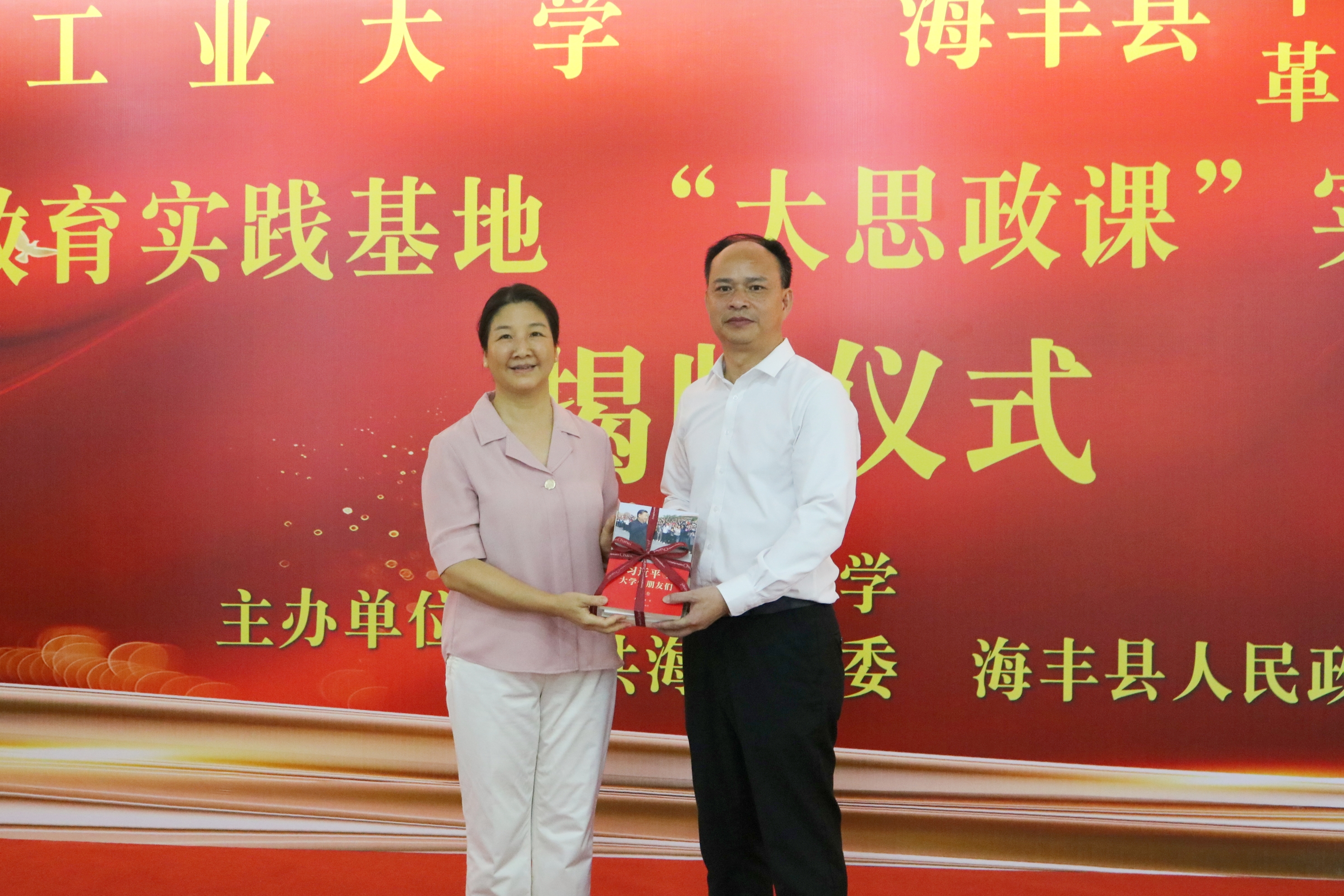 仪式上,双方签订共建基地协议,胡钦太、朱蔚蔚、陈卓武、梁红武、庄红琴、郭文炯共同为思想政治教育实践基地揭牌。广工向海丰县革命烈士暨革命斗争史纪念馆赠送书籍。随后参观了海丰县革命烈士暨革命斗争史纪念馆。