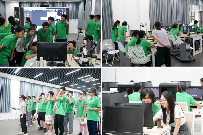 实践检验真理,探索启迪智慧。走进国家级工程训练中心,营员们亲身体验3D打印、激光切割与机械臂操作等技术,看着电脑中一个个生动模型在自己的操作下渐渐成型,最终成功制造出一个个精细的模型、精美的卡牌、文艺的书签和可爱的徽章,并通过简单的编程就实现了机械臂的运动与抓取,营员们由衷赞叹科技的神奇。“在这里,我参与了生动有趣的科研实验,也体验了虚拟现实实训课程。那一刻,我深刻感受到,科技改变生活,更能为乡村振兴注入强大动力,而我们也将是最坚定的推动者。”来自郁南县连滩中学的陈华锋谈到。
