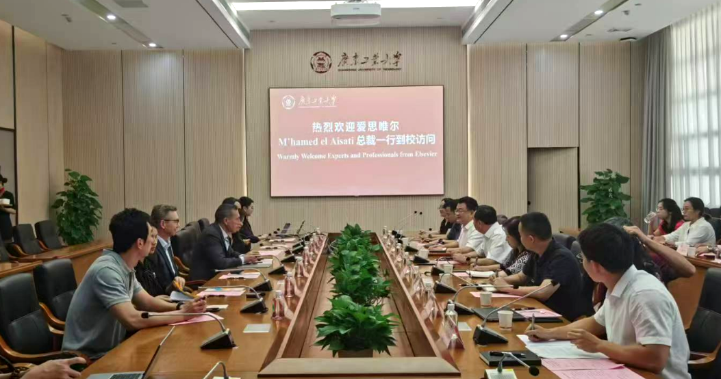 余林首先对M’hamed el Aisati一行来访表示热烈欢迎,从学校的办学历史、学科建设、人才培养、科学研究等方面介绍了学校发展概况,重点介绍了学校自实施“1+2+3”攀撑计划学科提升工程以来,各重点领域的建设成效与改革举措。他表示,近年来广工学科水平、育人质量、科研能力快速提升,尤其重视学科发展与区域产业布局深度融合,形成了省属工科高校强有力支撑粤港澳大湾区国际科技创新中心与人才高地的新范式。余林进一步强调,学校十分重视提升科研数据治理能力,希望在促进国际先进领域科研合作、提升热点领域科研成果影响力、建立良好国际学术声誉等方面,与爱思唯尔等国际领先学术出版与分析结构开展深入合作,共同挖掘科研创新潜力,扩大广工学术声誉与影响力。