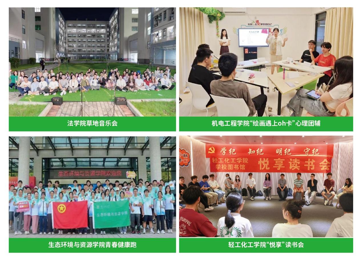 同期,广工心理健康教育中心和各二级学院心理辅导站共同举办了“五育润心,悦享成长”心理健康教育系列活动,广泛开展“悦心”团体辅导、“悦读”心理读书会、“悦动”心理素质拓展活动、“悦赏”心理美育活动、“悦卉”心理园艺活动等主题活动;各学院结合专业特色,以开展互动式、体验式、浸润式的院级心理教育活动,全面促进学生身心健康,校院联动在全校范围内营造了“人人关注健康,心心关注心理”的心理文化育人氛围。