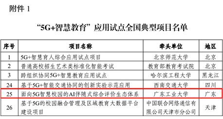 日前,工业和信息化部、教育部印发通知,公布“5G+智慧教育”应用试点全国典型项目及通过验收项目名单,分别有44个项目、93个项目上榜。广工胡钦太教授主持完成的“面向5G智慧校园的AI伴随式综合评价生态体系”被评为“5G+智慧教育”应用试点全国典型项目。