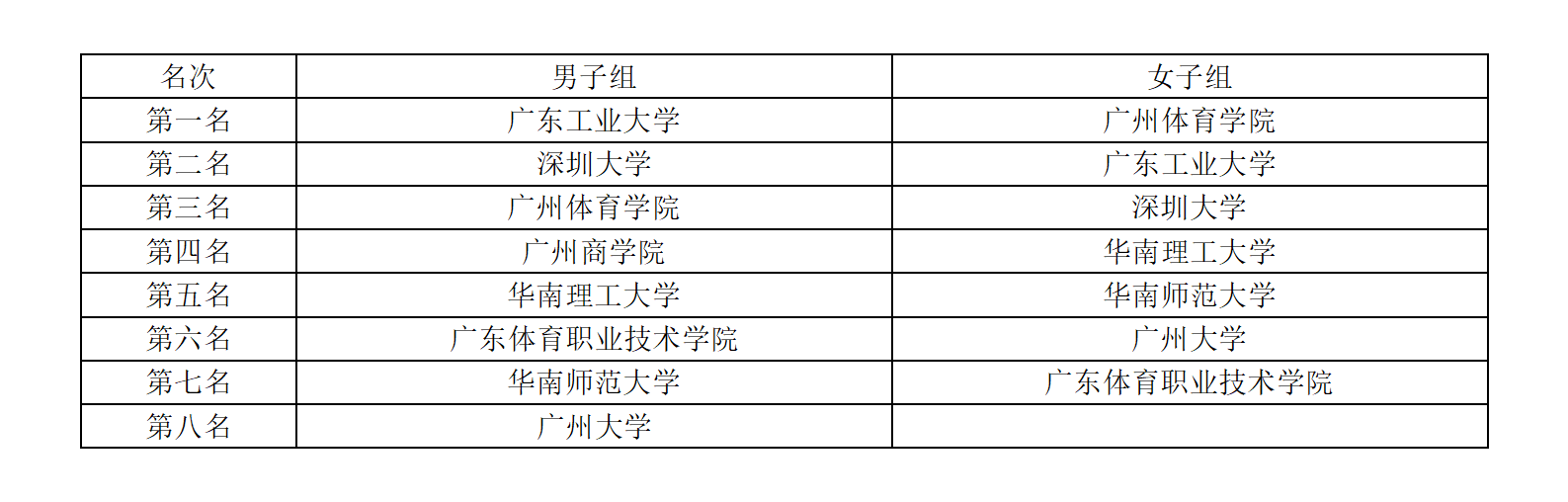 广东省第24届大学生篮球联赛暨广东省第十二届大学生运动会篮球预赛(乙B组)名次表