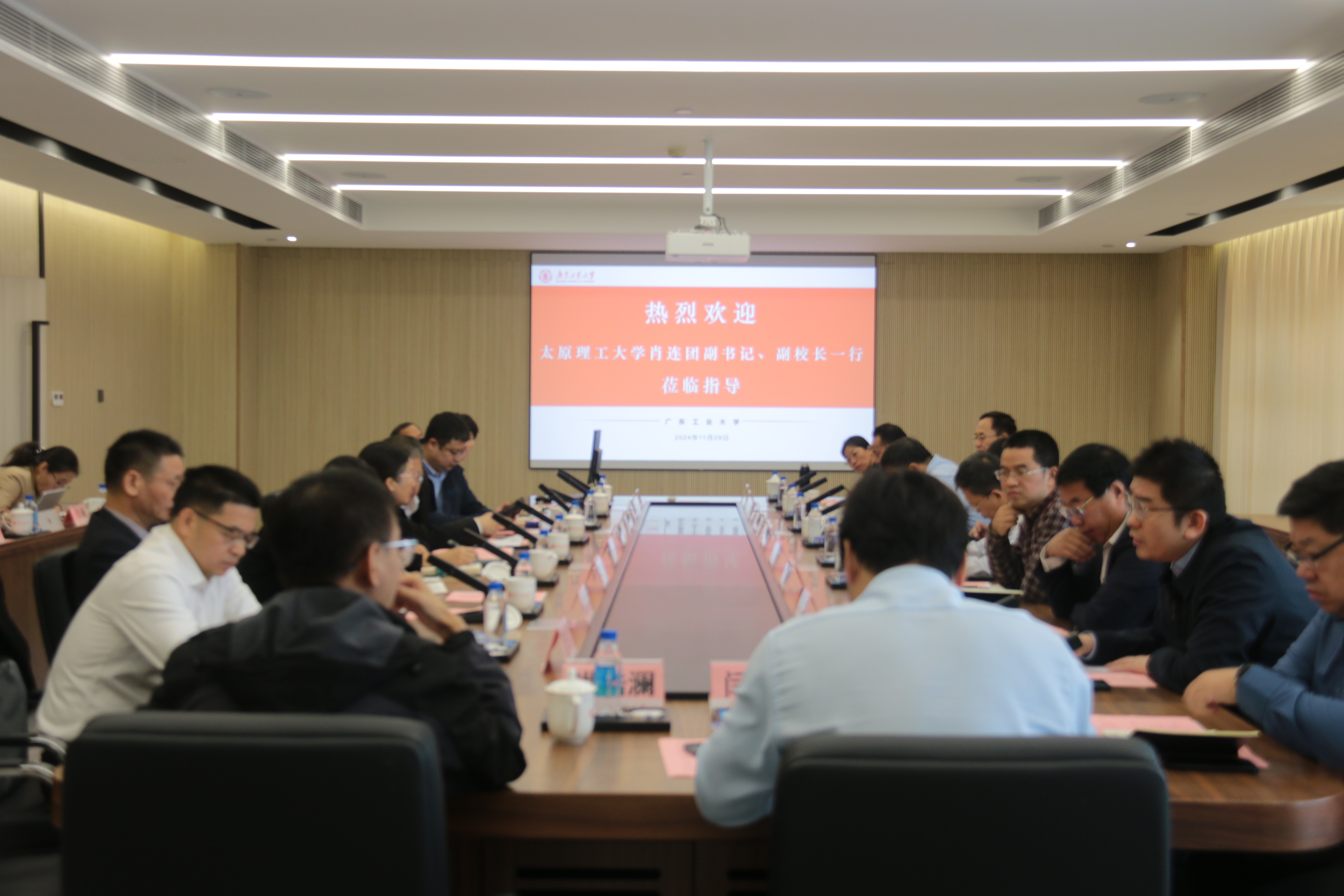 朱蔚蔚首先向肖连团一行表示热烈欢迎,并简要介绍了学校的基本情况和办学特色。她表示,太原理工大学作为国家“211工程”和“双一流”建设高校,在多个领域都积累了宝贵的经验,值得学校深入学习与借鉴。此次交流活动不仅为两校提供了宝贵的学习和借鉴机会,更是推动两校友谊与合作的重要契机。期待双方能够充分交流、共享资源,共同探索高等教育发展的新路径,为两校的高质量发展注入新的活力。
