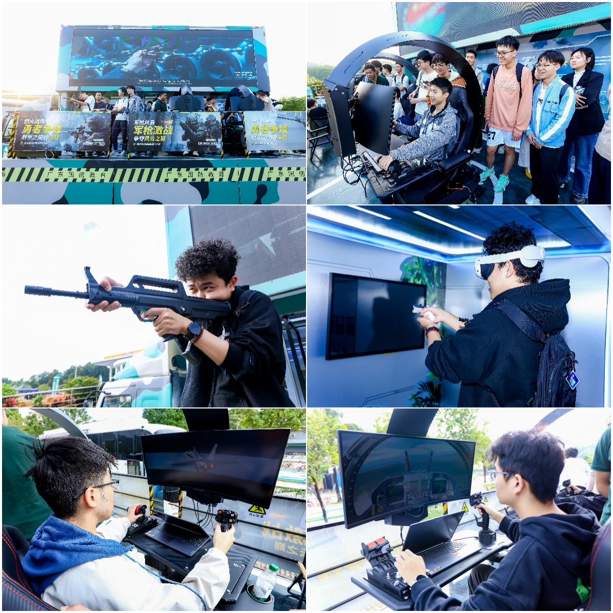 活动现场设咨询体验区、闯关项目区、服务保障区,包括入伍政策咨询点、征兵移动体检车、国防教育大篷车、国防科技力量展示区等多个体验展示区域和争分夺秒、神枪手、习武堂、战场红十字、穿上军装等7个闯关挑战项目。“守护号”国防教育大篷车,以“迷彩装扮”,车内设置国防宣讲区、模拟飞行区、模拟射击区、产品展示区等区域,让学生身临其境地体验先进武器。展区展示了99A坦克、歼20、歼20S双座战机、海军隐身舰载战斗机歼35、东风17超音速导弹、东风41、东风31A、东风5B战略核导弹、福建号航母编队等现代军用武器模型,让学生直观感受国防科技力量。活动现场还设2024年入伍学生光荣榜、优秀退役大学生风采、参军入伍政策等展览。
