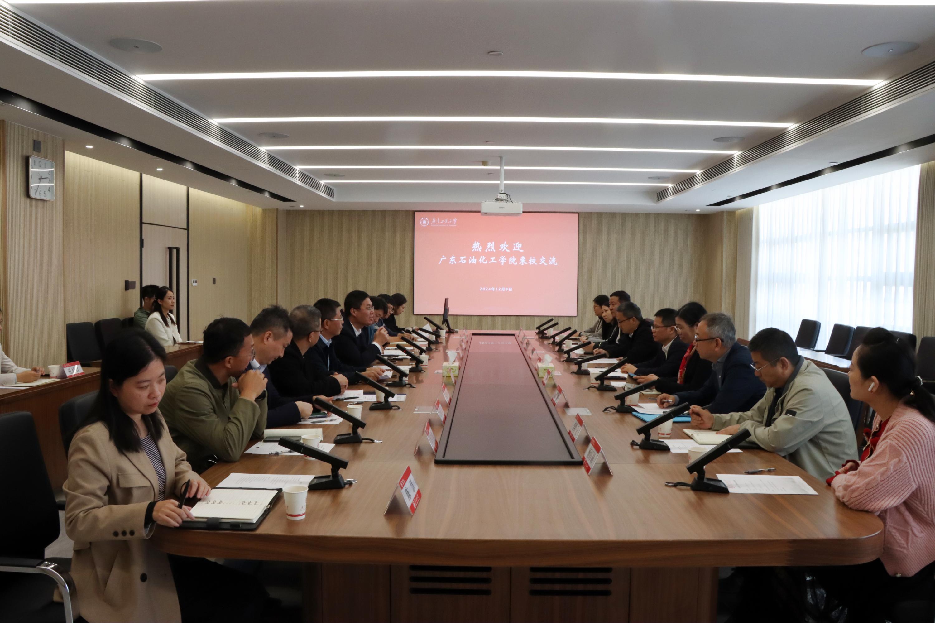 12月9日,广东石油化工学院党委常委、副校长万勇带队来校开展调研交流。学校党委常委、副校长王振友接待来宾。