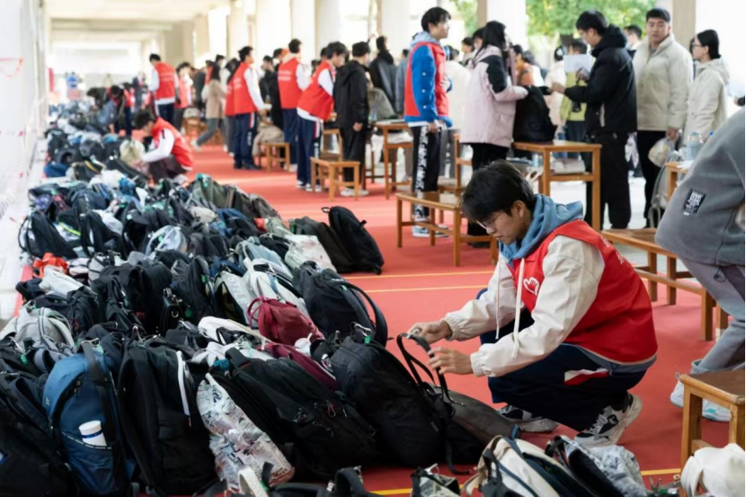 为考生营造良好考试环境,在党委办公室、校长办公室的统筹协调下,研究生院协同相关部门,充分做好各项组考工作准备,切实优化考生服务。考前学校官方平台、研究生院宣传平台为考生发布考前温馨提醒和交通指引;保卫处、总务部、团委等部门精心设计入场线路、考生物品存放及安检方案,动员100余名保安、物业管理人员,160余名学生志愿者,设置50个存包区域、4个安检入口、8扇智能安检门,并专门安排4辆电瓶车在校门口接送迟到考生,确保考生安全、快速、有序入场;学生处全力做好涉研考辅导排查以及考试期间的学生活动管控;医院派出2组医疗队全程做好医疗保障服务。