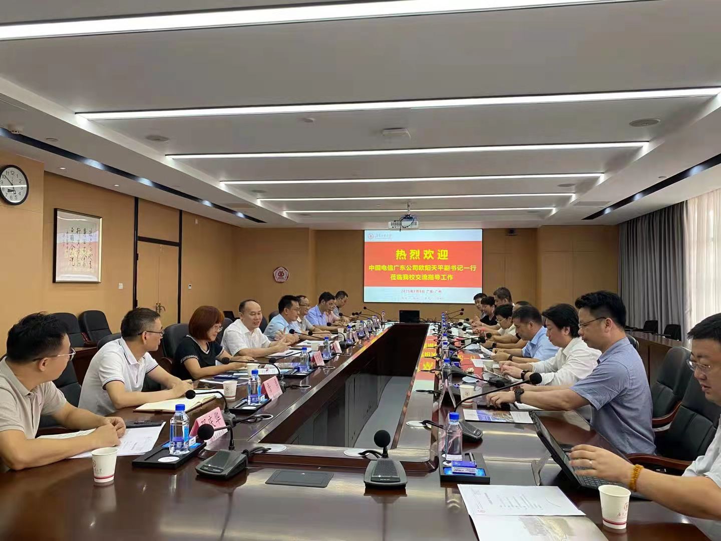 9月8日下午,中国电信广东公司副书记欧阳天平率团到广工访问交流。学校党委常委、副校长阳爱民主持交流座谈会。党委办公室、校长办公室、财务处、教务处、学生工作处、网络信息与现代教育技术中心等负责人参加了座谈交流。