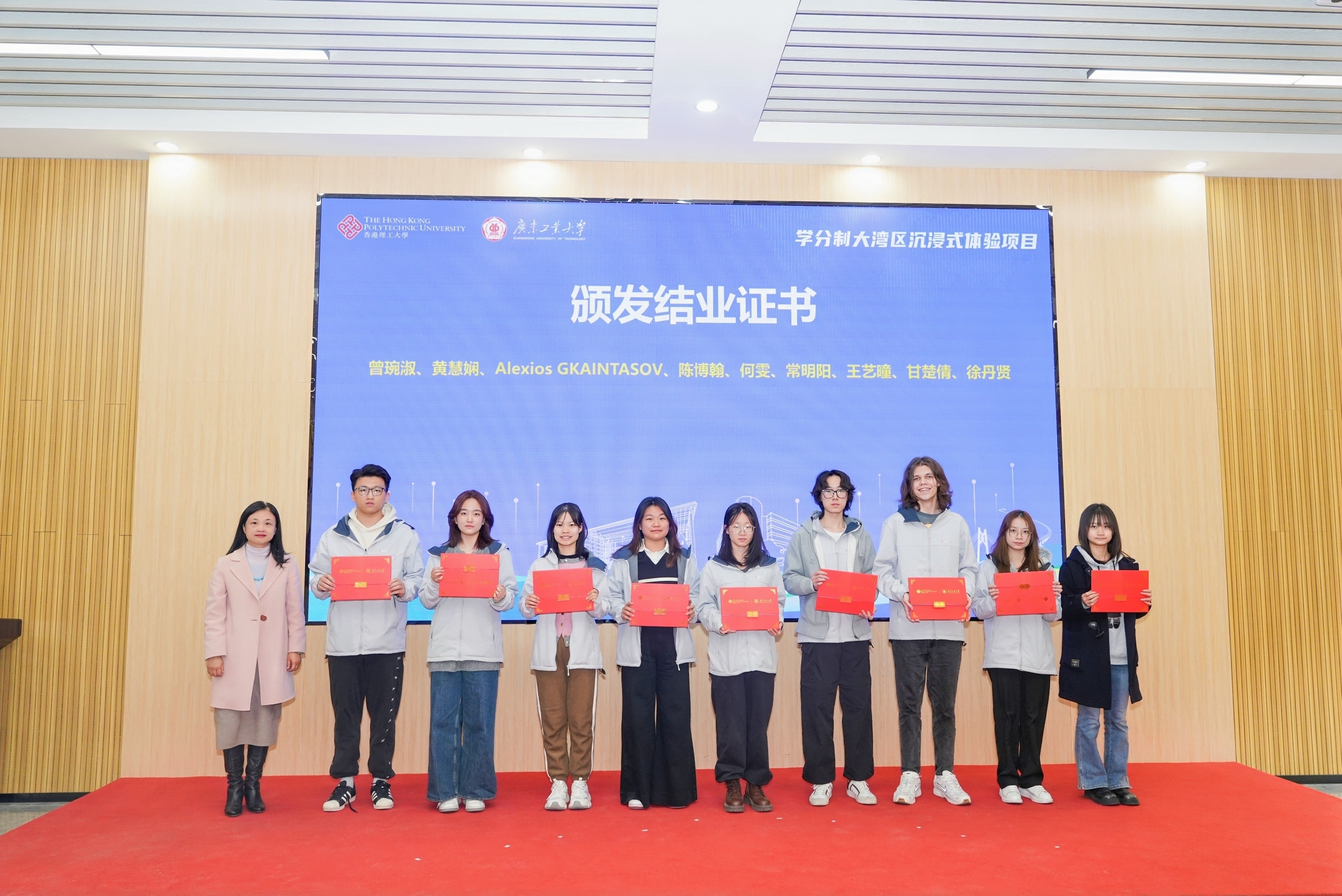 据悉,“学分制大湾区沉浸式项目”是广工联合港澳高校跨境协同培养大湾区高素质人才的系列项目之一,同时也是港理工创新及创业副主修课程必修科目,港理工学生按要求修读完项目课程将获得创新及创业副主修课程对应学分。按要求修完项目的同学会获得两校认证的结业证书。后续,各组同学还将继续深化项目、联合落地创业。接下来,两校将以本次项目为起点,进一步深化拓展项目内涵,推动两校学生积极参与两校联合实施的“大湾区创新创业培育计划”、“大湾区创新创业实习体验计划”等,在联合参加竞赛、联合申报项目、联合创业孵化等方面开展多领域交流合作,共同助力粤港澳大湾区高水平人才高地建设。