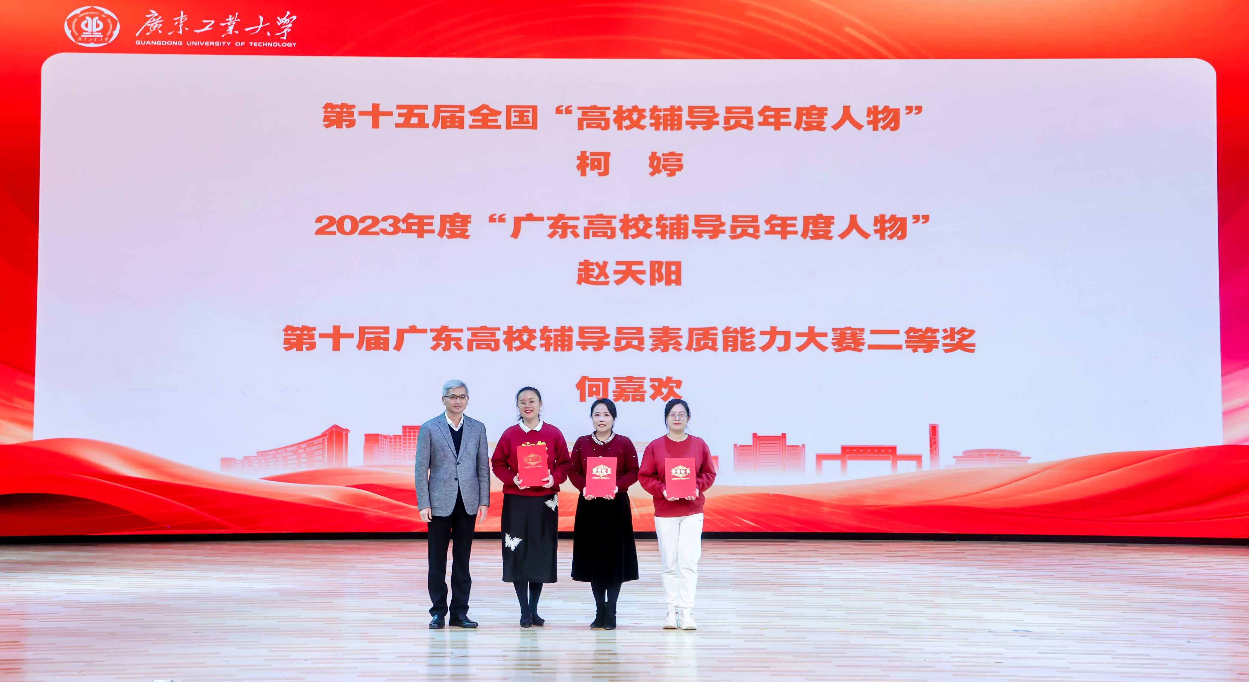 陈卓武为第十五届“高校辅导员年度人物”、2023年“广东高校辅导员年度人物”、第十届广东高校辅导员素质能力大赛获奖辅导员颁奖。活动还表彰了8xbet网2024年优秀学生工作集体和优秀个人,与会领导、嘉宾为相关获奖单位和个人颁奖。