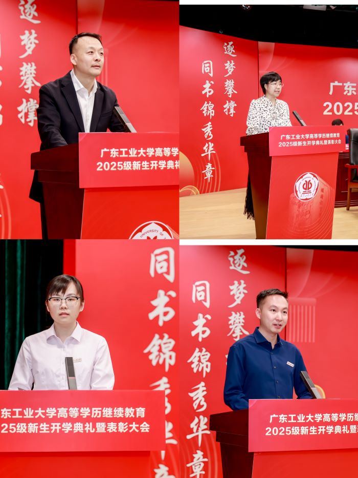 教师代表陈晓瑜结合成人教育学习特点,希望大家在学习中持之以恒、锲而不舍,主动探索、积极进取,学以致用、知行合一;不断深化对知识的理解,提升解决实际问题的能力,实现知识与实践的相互促进,在工作和学习的融合中展现继续教育的价值。2024届电气工程及其自动化专业黄靖、2025级法学专业钟健鹏分别代表优秀毕业生和新生在典礼上发言。