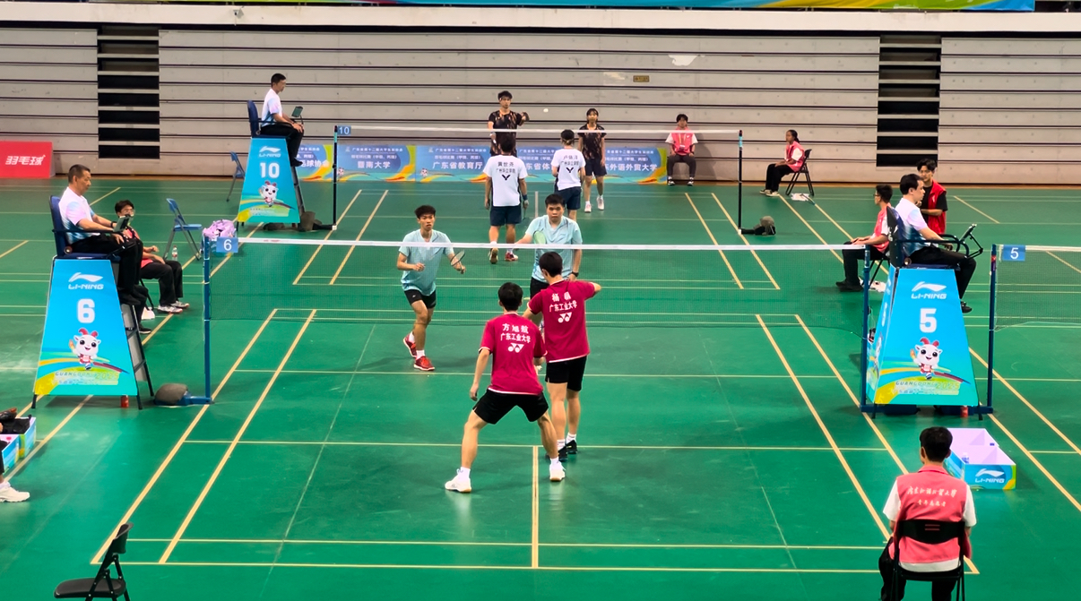 5月7日,广东省第十二届大学生运动会羽毛球比赛在广东外语外贸大学大学城校区举行。8xbet网甲组羽毛球队顽强拼搏,斩获男子双打冠军,夺得本届省大运会广工代表团首枚金牌。