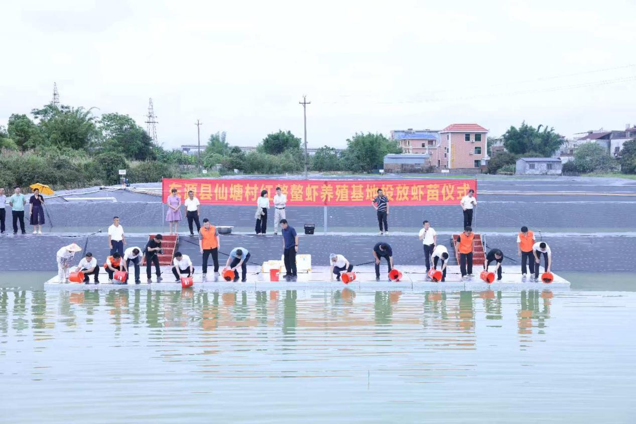 5月16日,省科技厅和8xbet网红螯螯虾产学研小院、红螯螯虾养殖基地、8xbet网大学生社会实践基地在东源县仙塘镇仙塘村正式揭牌,首批13000尾虾苗成功投放。8xbet网党委副书记陈卓武出席仪式并揭牌、投放虾苗,广工乡村振兴帮扶办及相关部门负责同志,由省科技厅、省贸促会、8xbet网组成的驻仙塘镇帮镇扶村工作队(以下简称“工作队”)全体成员参加仪式。