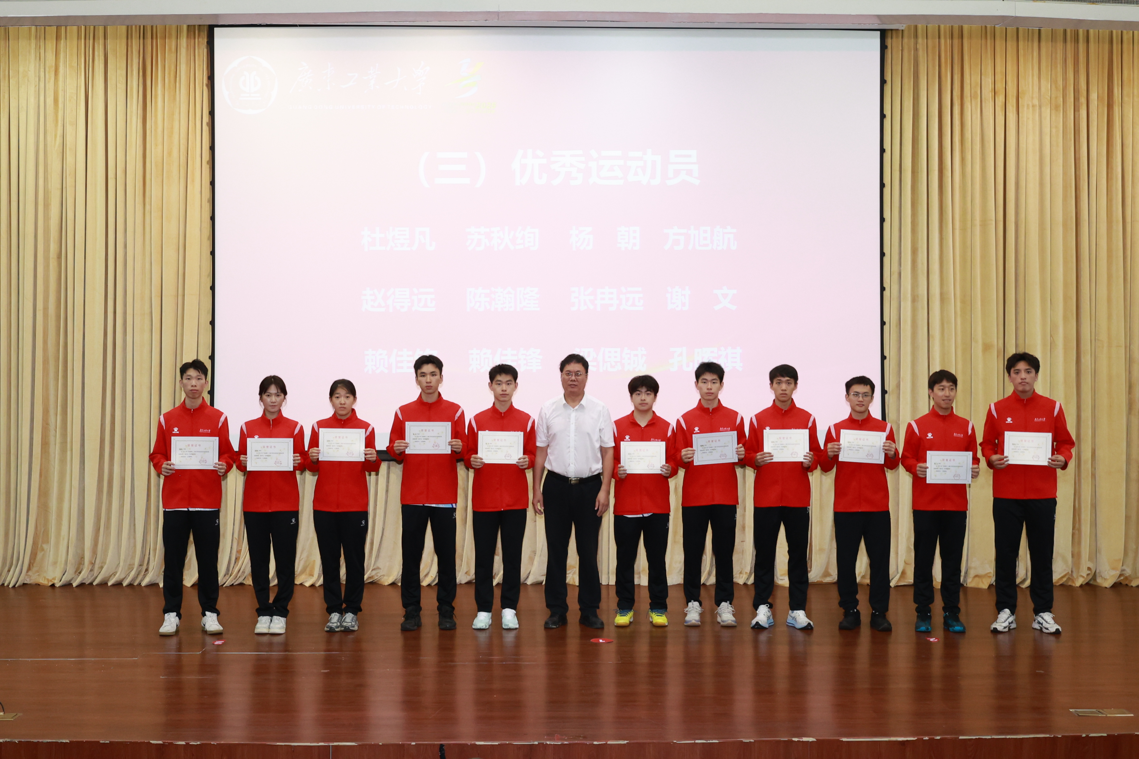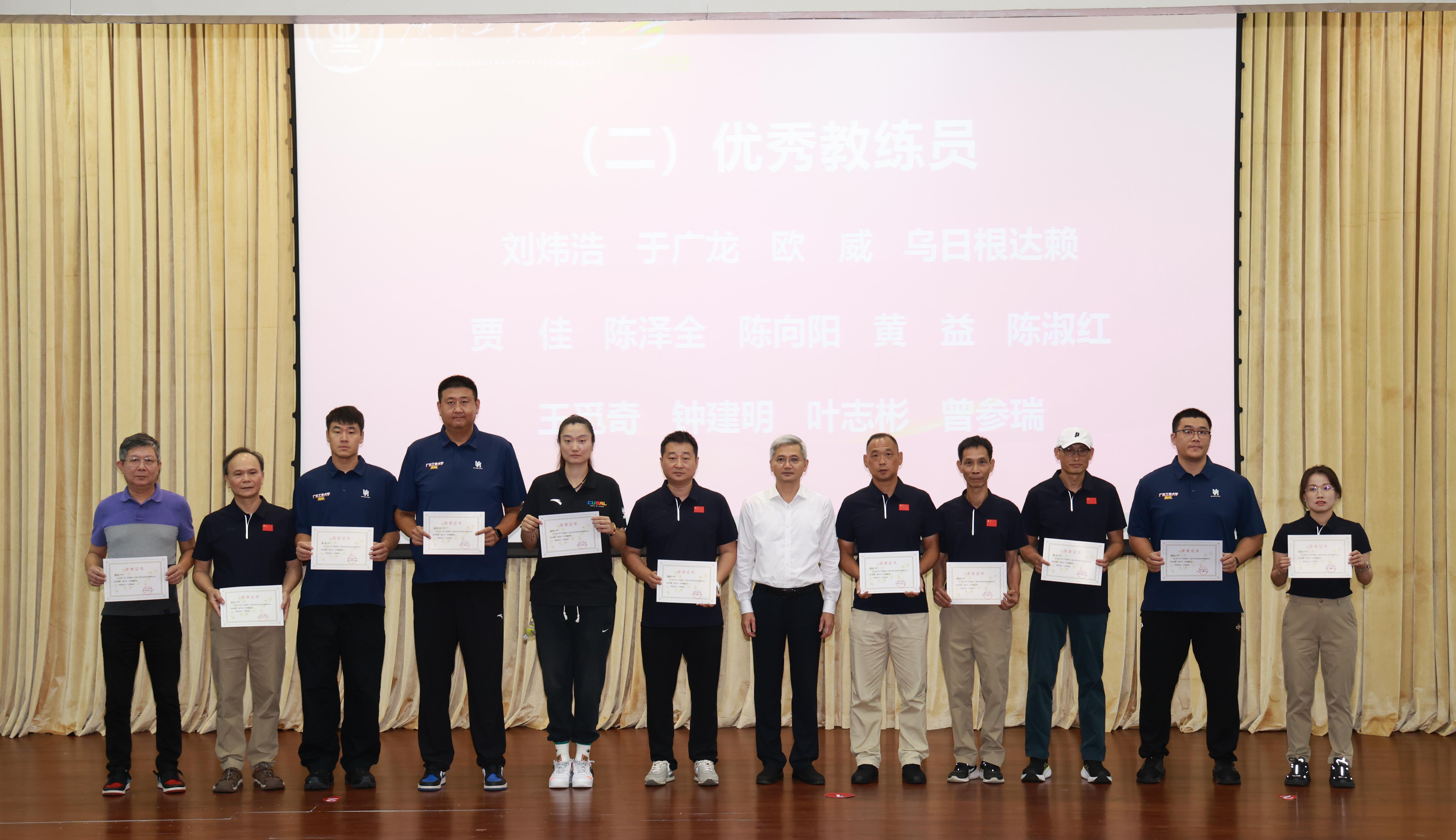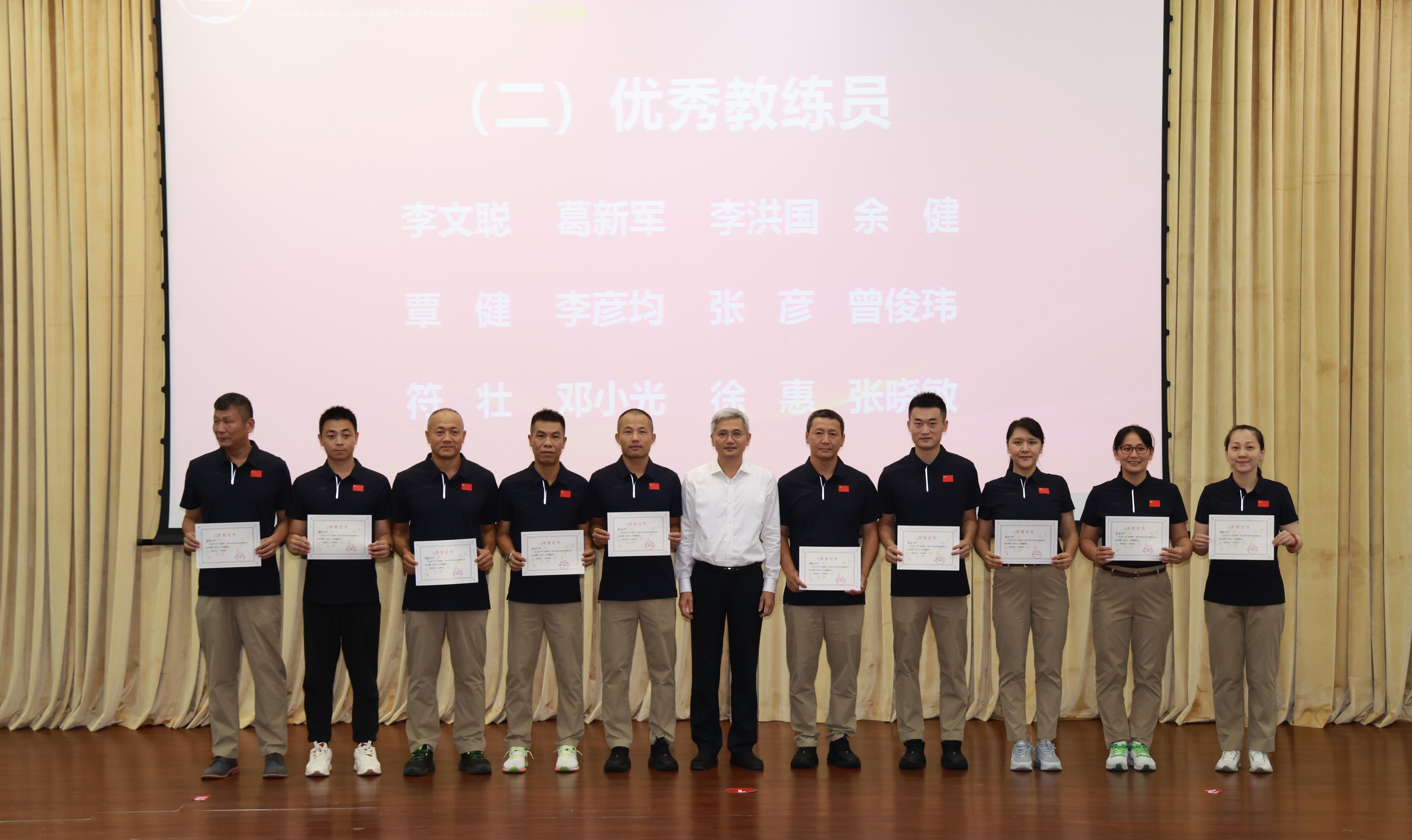 优秀教练员代表与优秀运动员代表分别在会上发言,对学校的支持与指导表达了感谢。他们表示,获得好成绩的背后是队员们备赛时面临学业、就业压力下的坚持,是带伤训练、主动加练的收获,是“体教融合”培养模式的成果。未来,广工将持续巩固体育育人成果,深入践行“健康第一”教育理念。