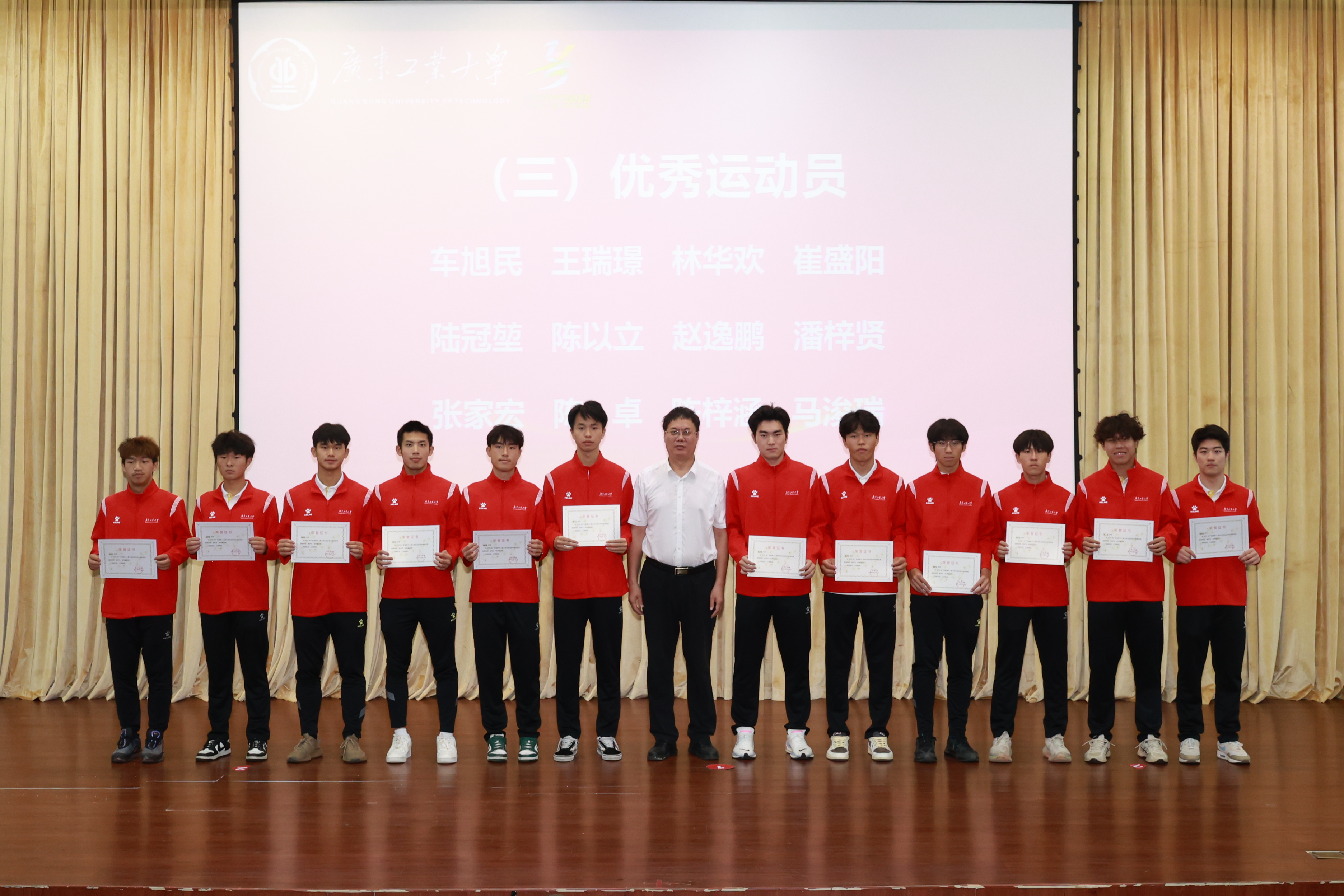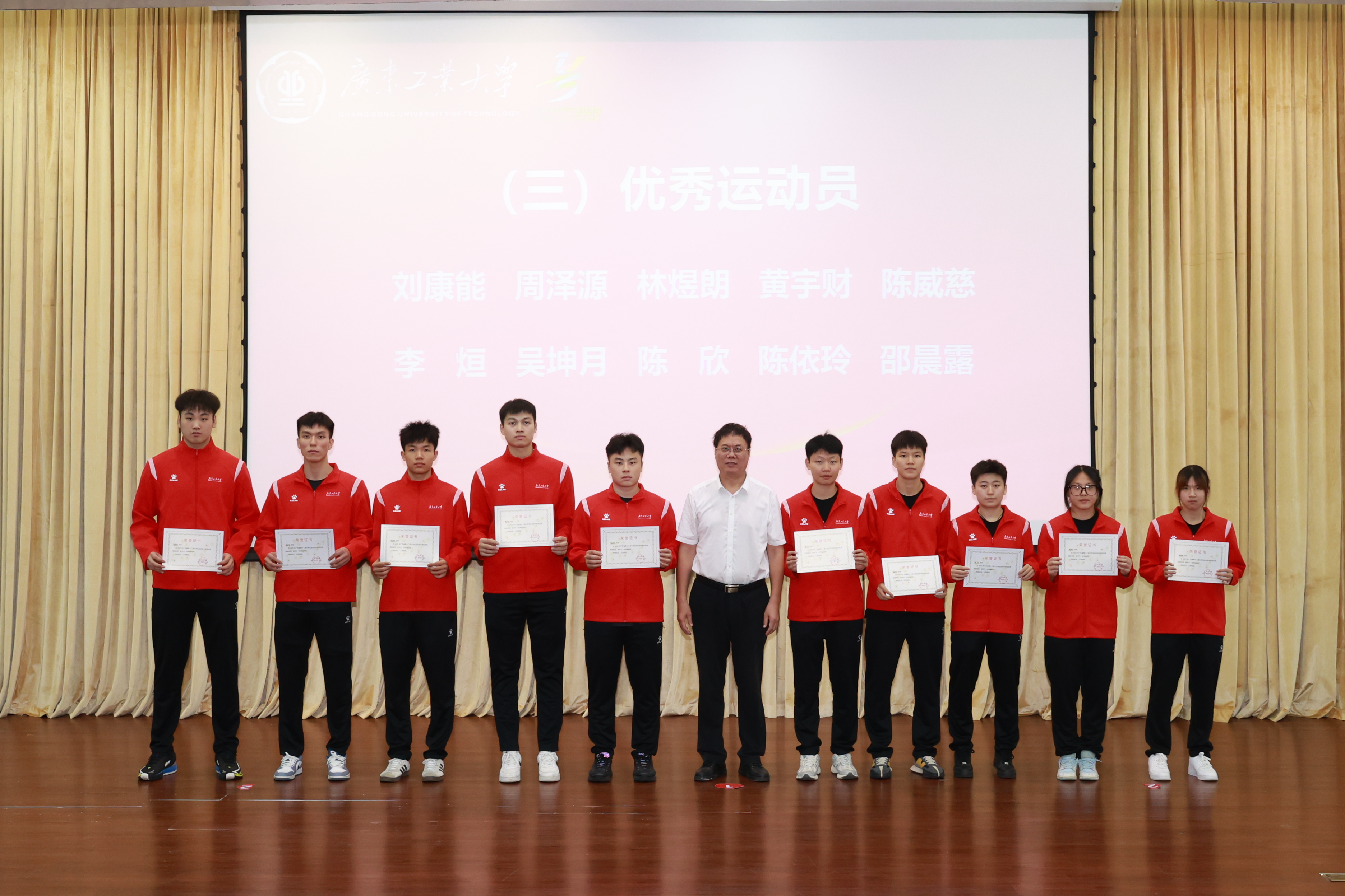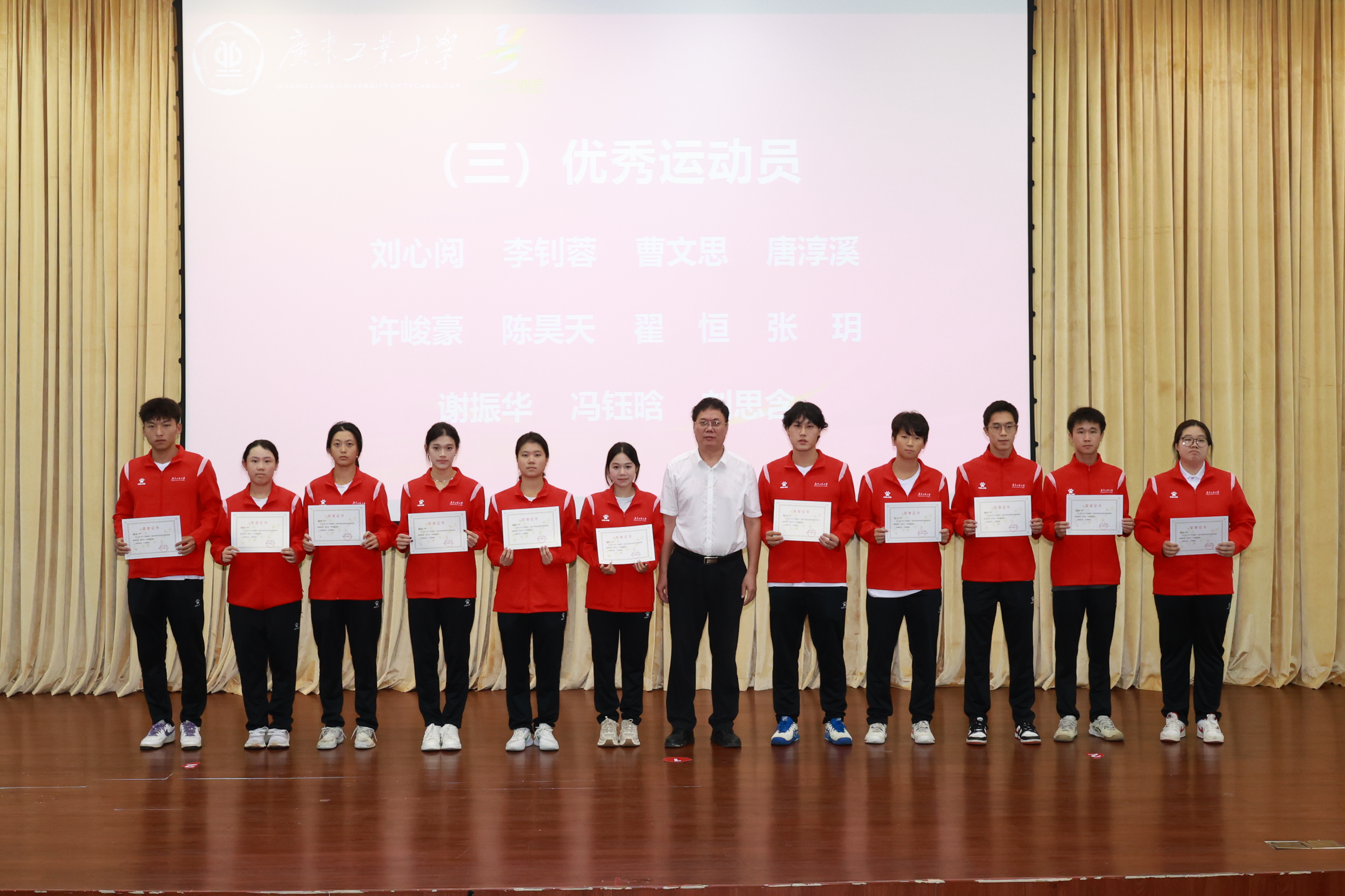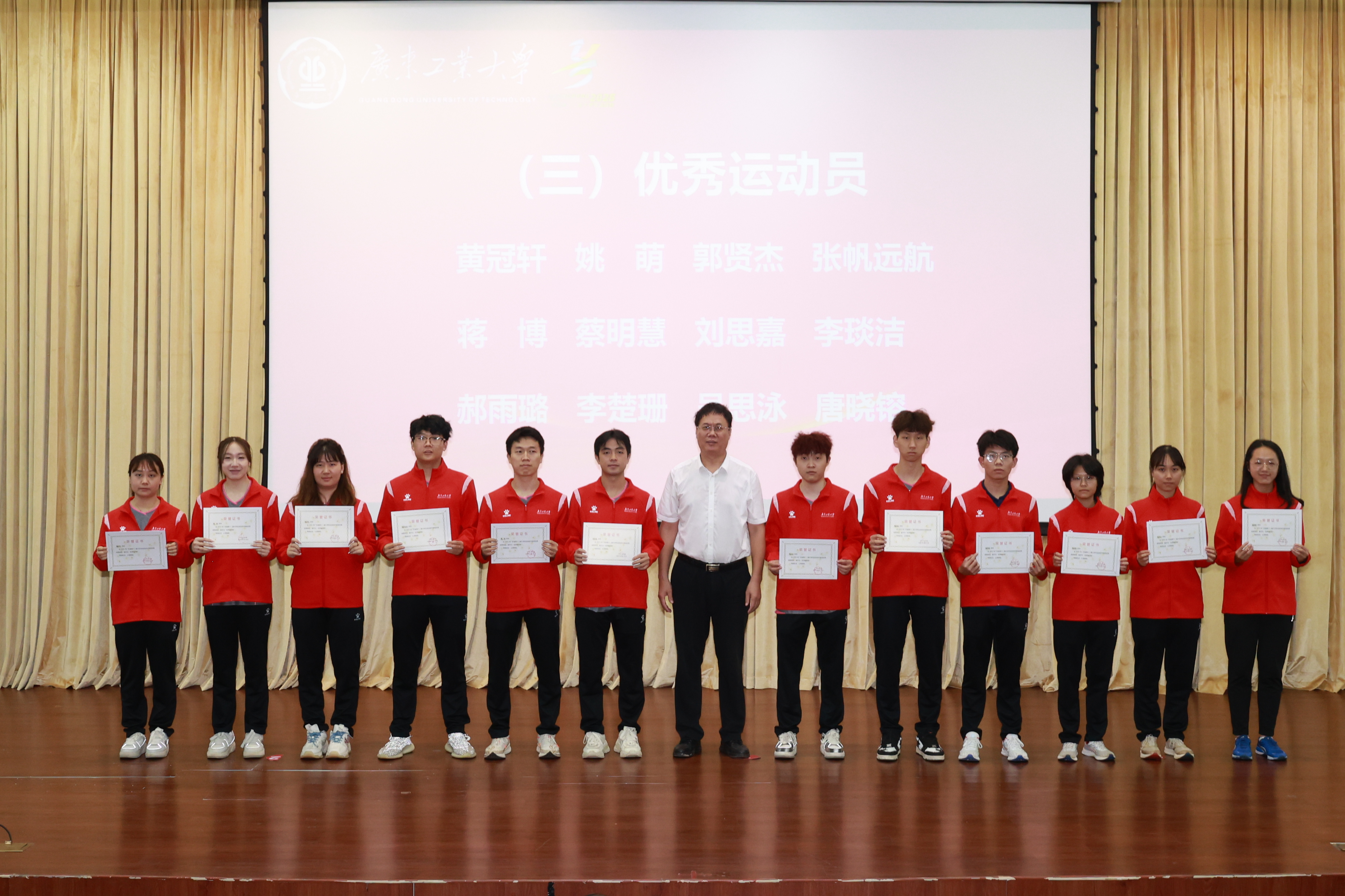 优秀教练员代表与优秀运动员代表分别在会上发言,对学校的支持与指导表达了感谢。他们表示,获得好成绩的背后是队员们备赛时面临学业、就业压力下的坚持,是带伤训练、主动加练的收获,是“体教融合”培养模式的成果。未来,广工将持续巩固体育育人成果,深入践行“健康第一”教育理念。