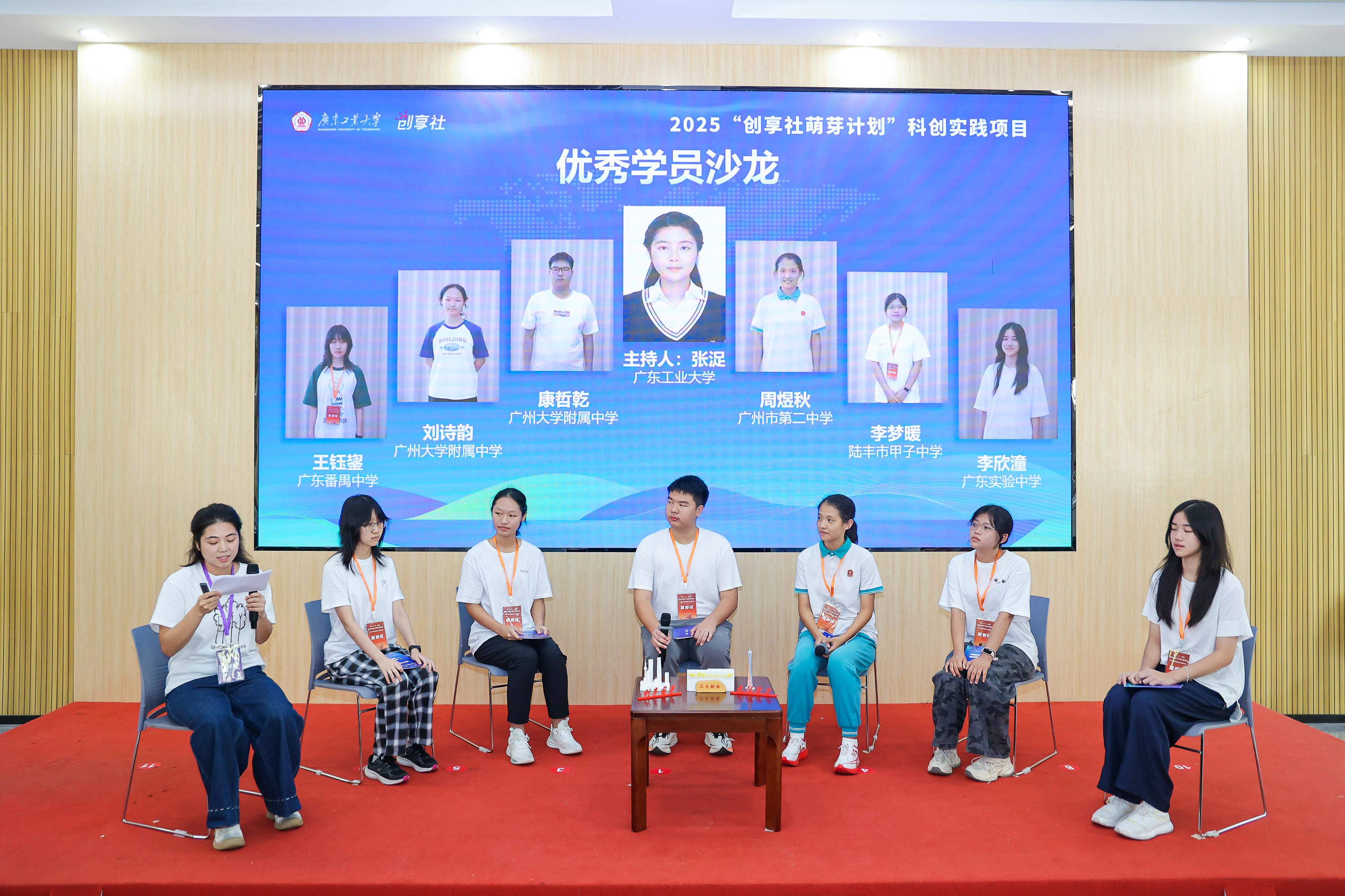 在优秀学员沙龙环节,来自广东实验中学、广州大学附属中学、广州市第二中学、广东番禺中学、陆丰市甲子中学的6位学员在大学生志愿者的组织下畅所欲言,分享项目期间的深切体验、深刻领悟与宝贵收获。