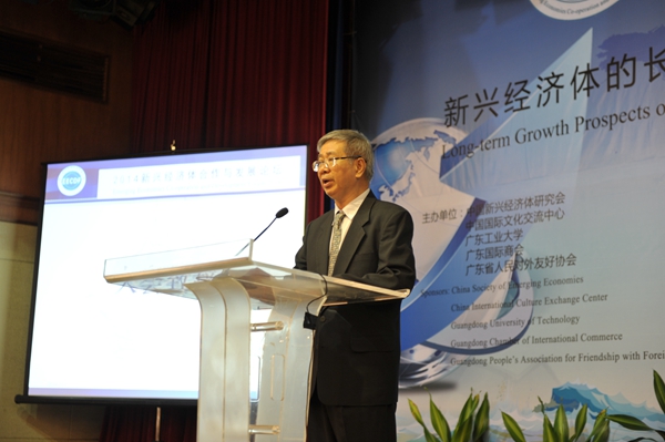 本网讯11月1日,2014新兴经济体合作与发展论坛在广州东方宾馆举行。论坛的主题是“新兴经济体的长期增长前景与21世纪海上丝绸之路建设”,由中国新兴经济体研究会、中国国际文化交流中心、8xbet网、广东省国际商会和广东省人民对外友好协会主办,广东省新兴经济体研究会、广东外语外贸大学国际经济贸易研究中心、广东财经大学国民经济研究中心等单位承办。来自俄罗斯、印度、南非、智利、墨西哥、缅甸、吉尔吉斯共和国、希腊、东部与南部非洲共同市场(国际组织)、孟加拉、阿根廷、新加坡、希腊、印尼等13个国家政府部门、外交使领馆、知名高校的学者,以及来自中国社会科学院、博鳌亚洲论坛、广东省友协、广东国际商会、国内60多个著名研究机构和高校的官员、专家、学者和部分新闻媒体共230多人出席了本次论坛。本次论坛分为开幕式、主题演讲和分专题讨论三个环节。