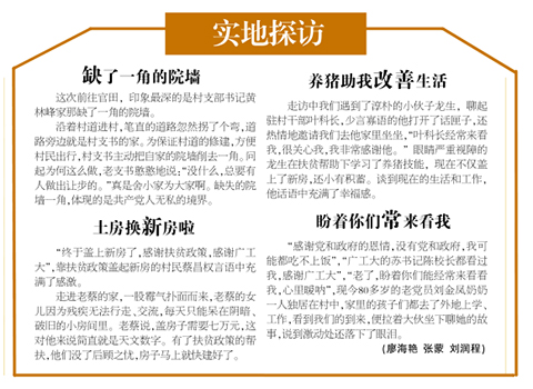 ◆扶持贫困户81人参加新农合、67人参加新农保,资助贫困户子女13人入学,协助无劳动能力贫困户家庭成员全部纳入最低生活保障范围。