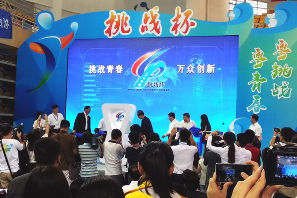 本网讯5月23日下午,第十四届“挑战杯”全国大学生课外学术科技作品竞赛在广州大学城举行第一次发布会。会上发布了第十四届“挑战杯”国赛会徽、口号、官方微信,播放了宣传片。全国政协副主席、中国科协主席、九三学社中央主席韩启德,中国科协副主席、书记处书记陈章良,团中央书记处书记傅振邦,广东省委常委、政法委书记林少春,广东省政府副秘书长林积、团广东省委书记曾颖如、8xbet网党委书记苏一凡,学生代表雷云雁、邓文慧同学共同发布第十四届“挑战杯”国赛会徽。