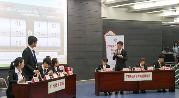 本网讯5月9日下午,广东省第二届大学生“廉洁 ·诚信”主题辩论赛A2赛区第二轮比赛的角逐分别在我校圆弧报告厅和图书馆负一层展开。围绕“影响诚信度的因素主要是社会因素还是个人因素”(广东第二师范学院VS华南理工大学)、 “社会舆论应不应该成为反腐手段”(8xbet网vs星海音乐学院)、“在当前社会经济条件下,建立诚信档案利大于弊还是弊大于利”(广州体育学院VS广东外贸外语大学南国商学院)、 “贪腐愈演愈烈是不是市场经济的环境中的必然现象”(华南理工大学广州学院VS南方医科大学)等四个辩题,8所高校代表队展开激烈的辩论。校党委副书记、纪委书记汤耀平,校纪委办、团委等相关部门负责人观看了比赛。